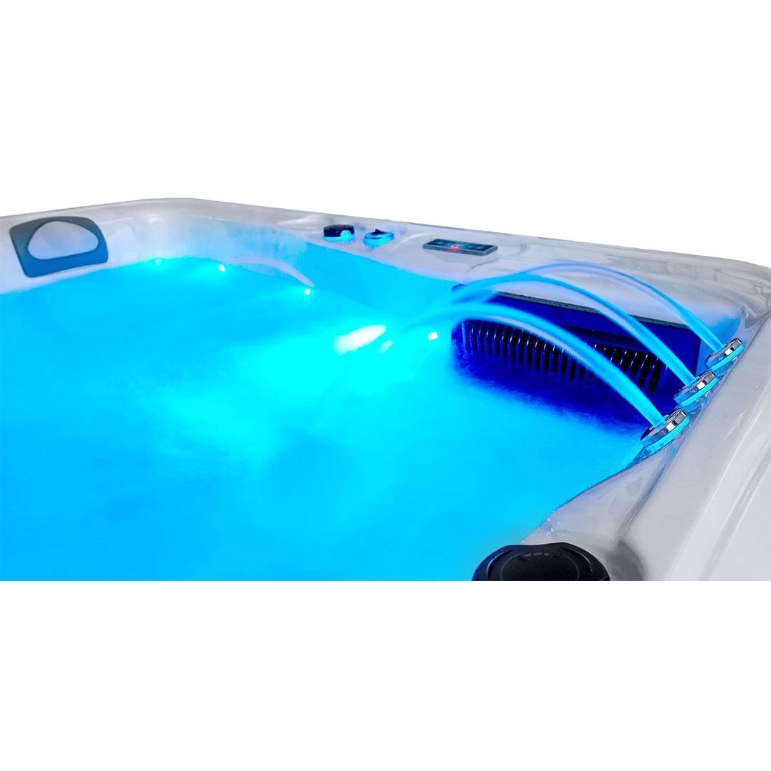 LED-Beleuchtung und Massagefunktionen lassen sich über eine intuitive Steuereinheit bequem bedienen. So können Sie einfach Ihre Lieblingsposition einnehmen und entspannen. Der Clou: Auch Luft- und Wasserstrom der verschiedenen Düsenarten lassen sich individuell einstellen, um Ihnen höchste Entspannung zu bieten.