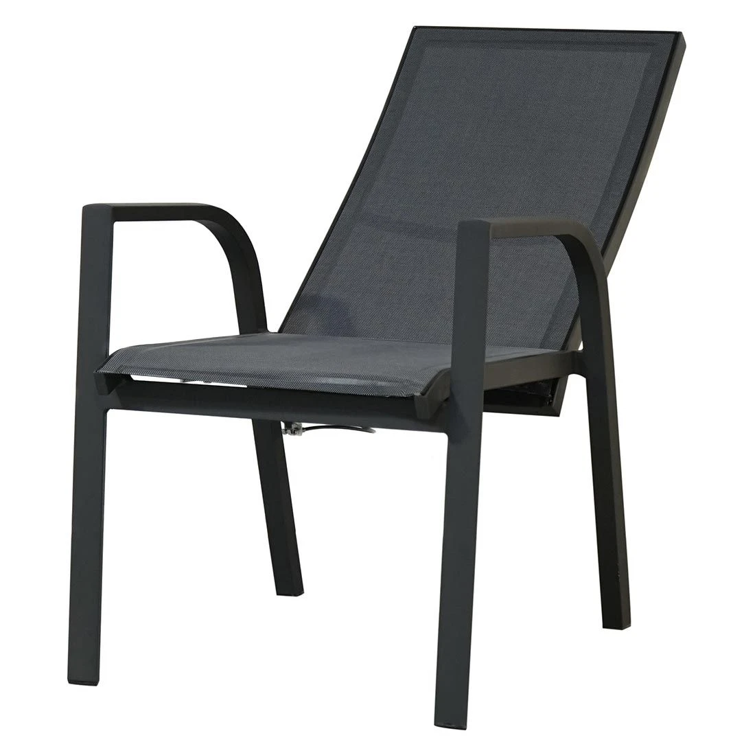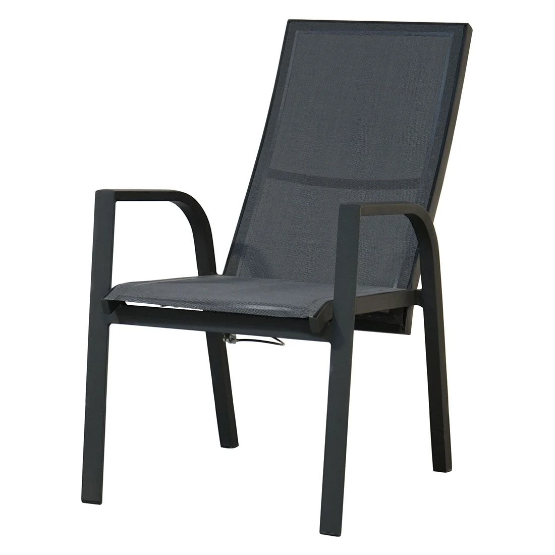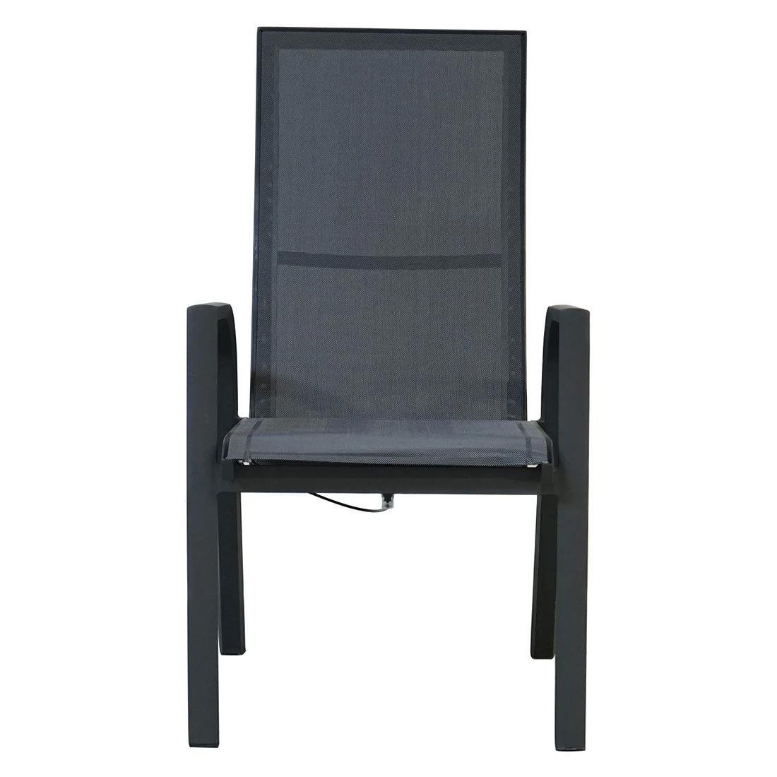Das Gestell besteht aus pflegeleichtem und wetterfestem Aluminium. Für eine attraktive Optik ist das Gestell im Farbton Anthrazit gehalten. Ein weiterer Pluspunkt des Stapelsessels ist die Bespannung mit Textilene. Dieser Bezugsstoff überzeugt durch eine hohe Robustheit gegenüber Hitze und Frost und ist leicht zu reinigen. Die Sitzfläche ist in ansprechendem Grau gehalten.