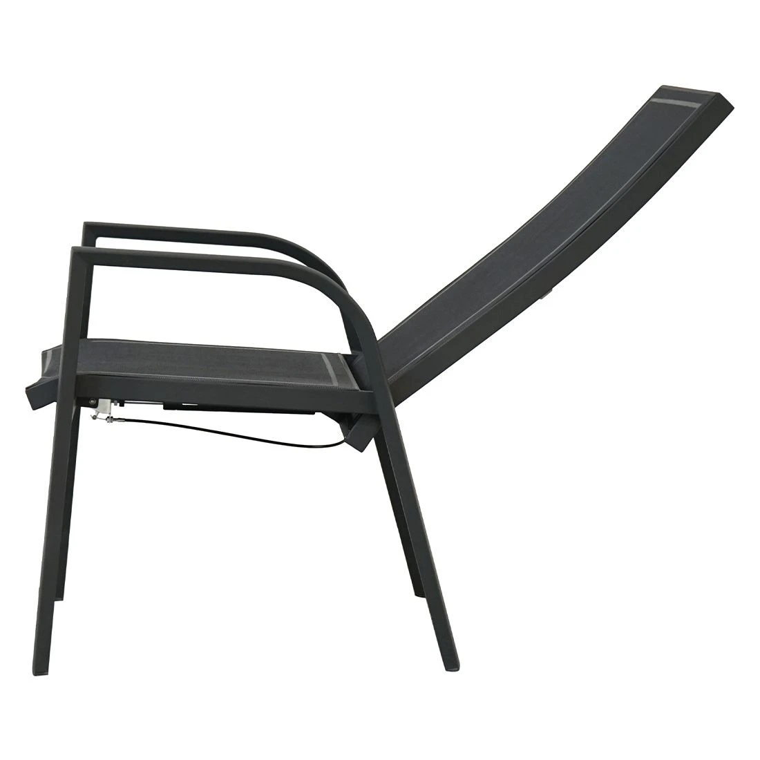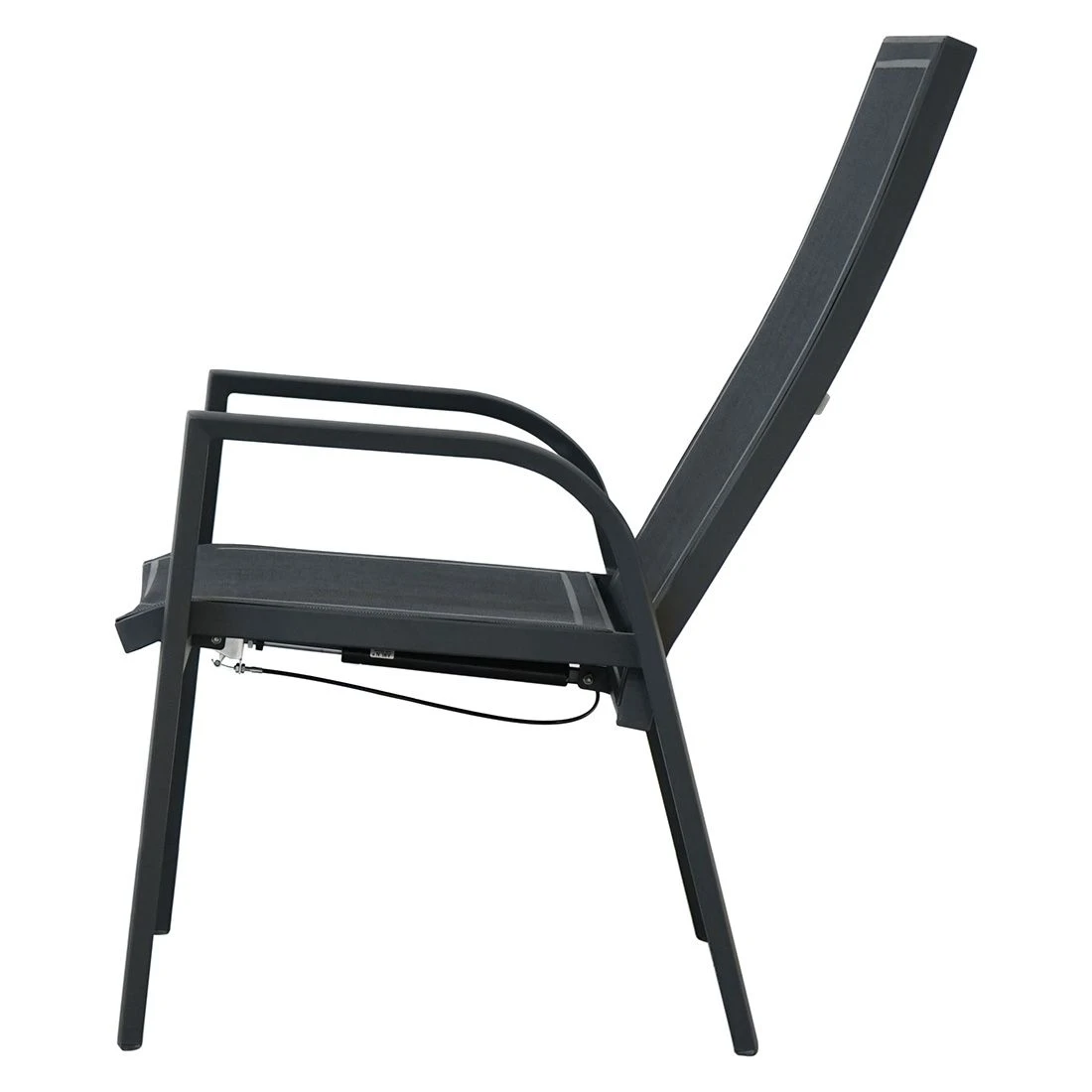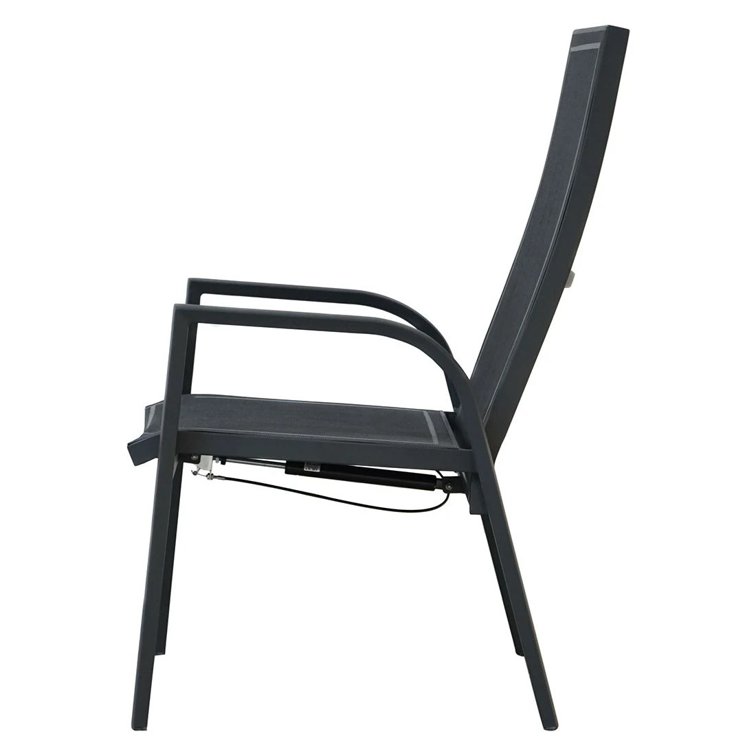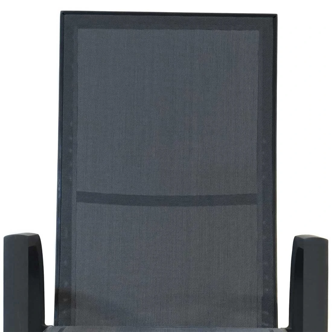 Das Gestell besteht aus pflegeleichtem und wetterfestem Aluminium. Für eine attraktive Optik ist das Gestell im Farbton Anthrazit gehalten. Ein weiterer Pluspunkt des Stapelsessels ist die Bespannung mit Textilene. Dieser Bezugsstoff überzeugt durch eine hohe Robustheit gegenüber Hitze und Frost und ist leicht zu reinigen. Die Sitzfläche ist in ansprechendem Grau gehalten.