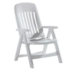 Der Klappsessel besteht vollständig aus Kunststoff. Dies erzeugt nicht nur ein geschmackvolles, sondern auch einheitliches Bild des attraktiven Möbels. Für ein perfekt stimmiges Gesamtbild sorgt die einheitliche Farbgebung in stilvollem Weiß.
