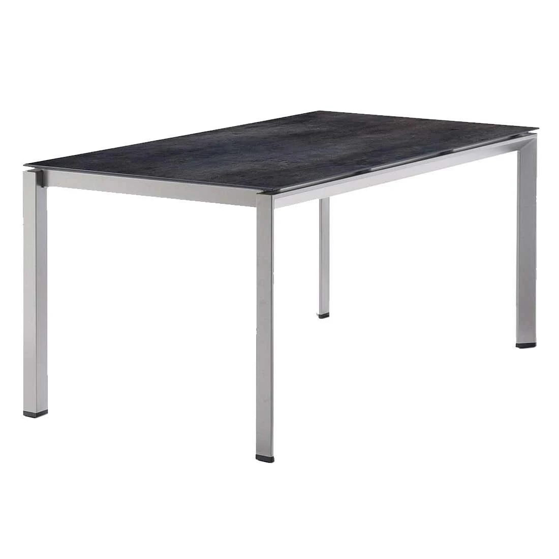 Das Gestell des leichten Tisches besteht aus Aluminium. Als klassische Design-Komponente fungiert das geradlinige Vierfußgestell. Die robuste Tischplatte aus Polytec überzeugt mit ihren Materialeigenschaften. Die Platte ist wetter-, kälte- und kratzfest und damit der perfekte Begleiter für Ihren Outdoor-Bereich. Farblich ist die Tischplatte in einem schönen Zement Anthrazit gehalten. Das Design des Gartentisches ist klassisch rechteckig gestaltet.