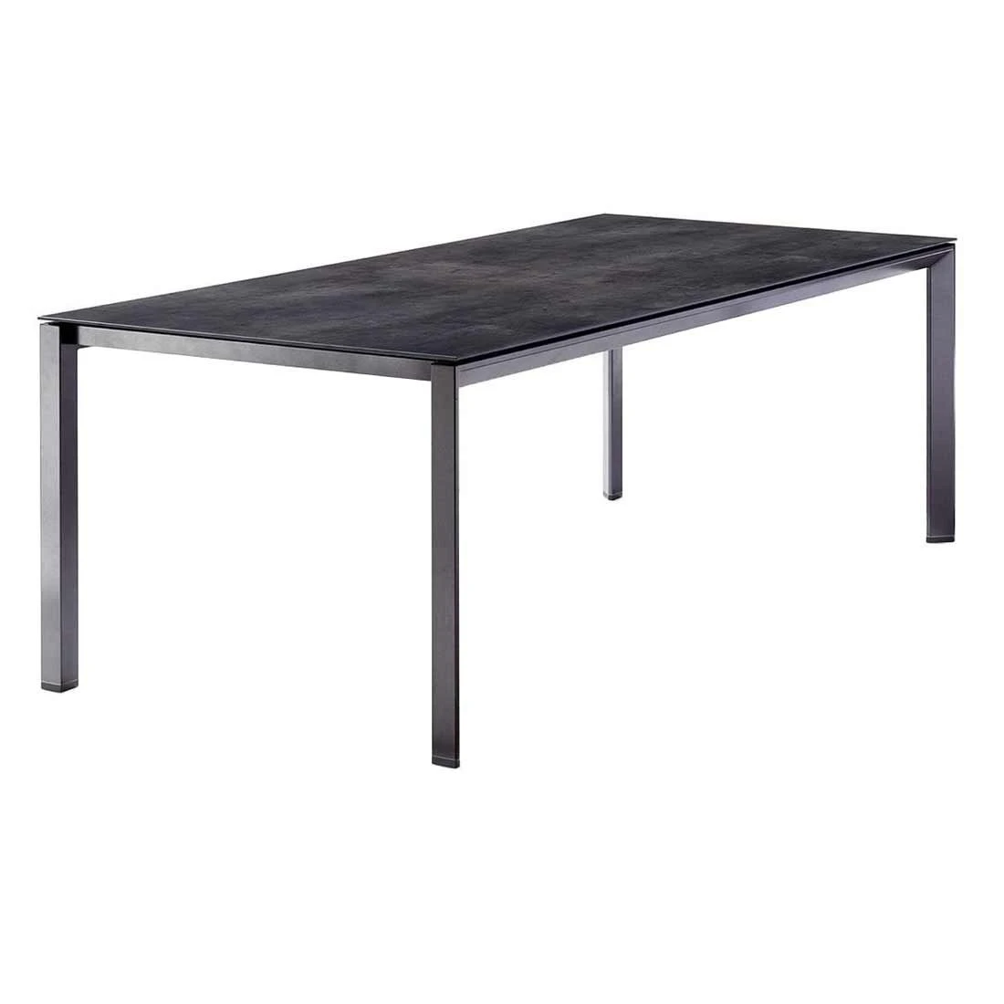 Aufgrund seines Gestells aus Aluminium zählt der Gartentisch zu den modernen Tischmodellen, die sich im Garten und auf der Terrasse ganz einfach aufstellen und bewegen lassen. Als klassische Design-Komponente fungiert das geradlinige Vierfußgestell. Die Tischplatte ist aus Polytec gefertigt. Es handelt sich dabei um eine besonders robuste HPL-Platte, die durch ihre Materialeigenschaften bestens für den Einsatz im Freien geeignet ist. Die Platte ist wetter-, kälte-, schlag- und kratzfest und zudem auch noch pflegeleicht. Farblich ist die Platte in Zement Anthrazit gehalten. Die rechteckige Form ermöglicht es Ihnen, den Gartentisch in Ecken und an Häuserwänden platzsparend einzusetzen.