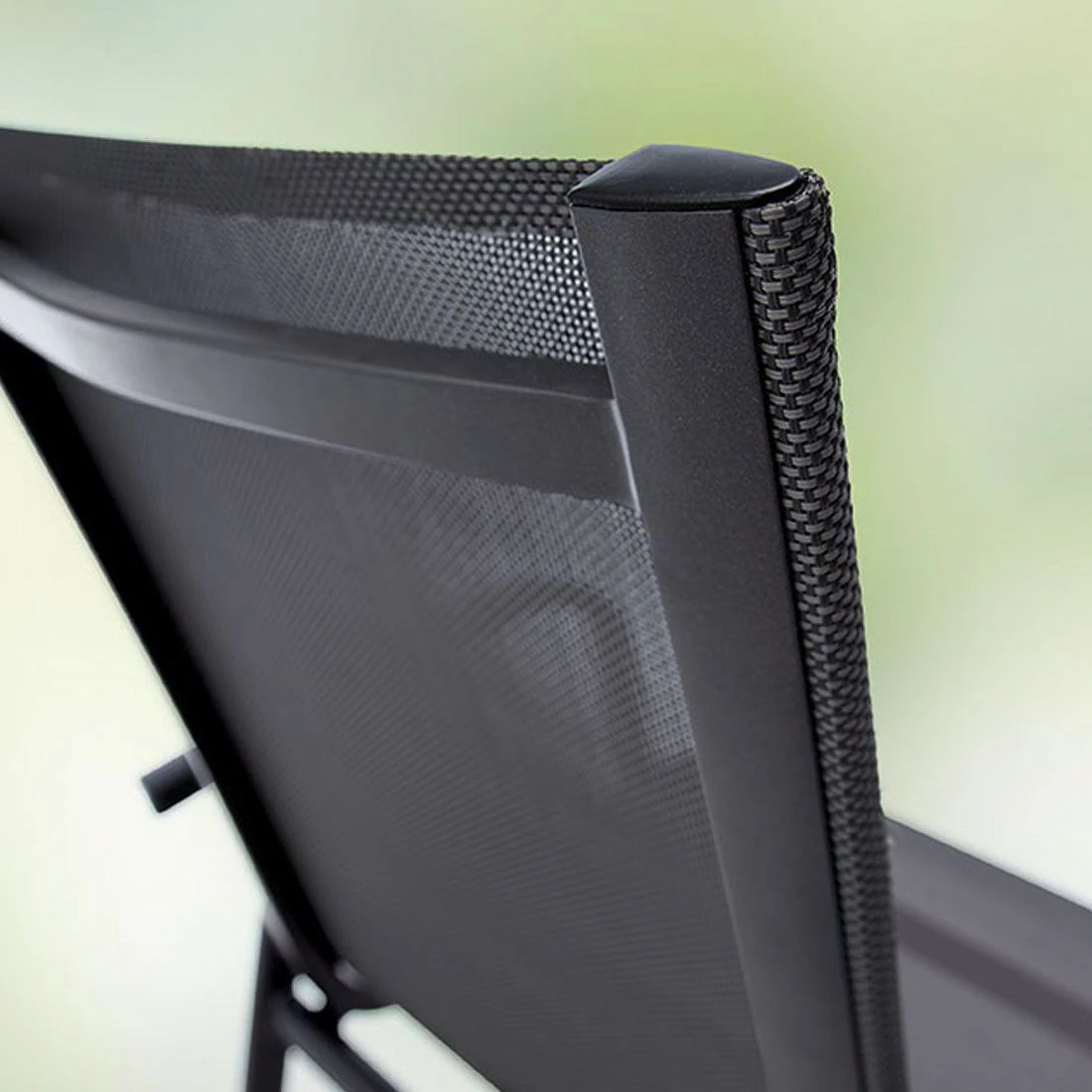 Das Gestell besteht aus pflegeleichtem und wetterfestem Aluminium in der Farbe Eisengrau (Anthrazit).