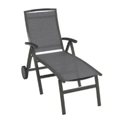 Für die Herstellung des Gestells wird hochwertiges und wetterfestes Aluminium verwendet. Für eine attraktive Optik ist das Gestell im Farbton Eisengrau (Anthrazit) gehalten. Die Sitzfläche wird mit Textilene bespannt. Dieses Material ist reiß- und wetterfest und zeichnet sich durch eine hohe Beständigkeit gegenüber Hitze und Frost aus. Darüber hinaus ist Textilene leicht zu säubern. Die Farbgestaltung der Sitzfläche in Eisengrau ist überaus ansprechend.