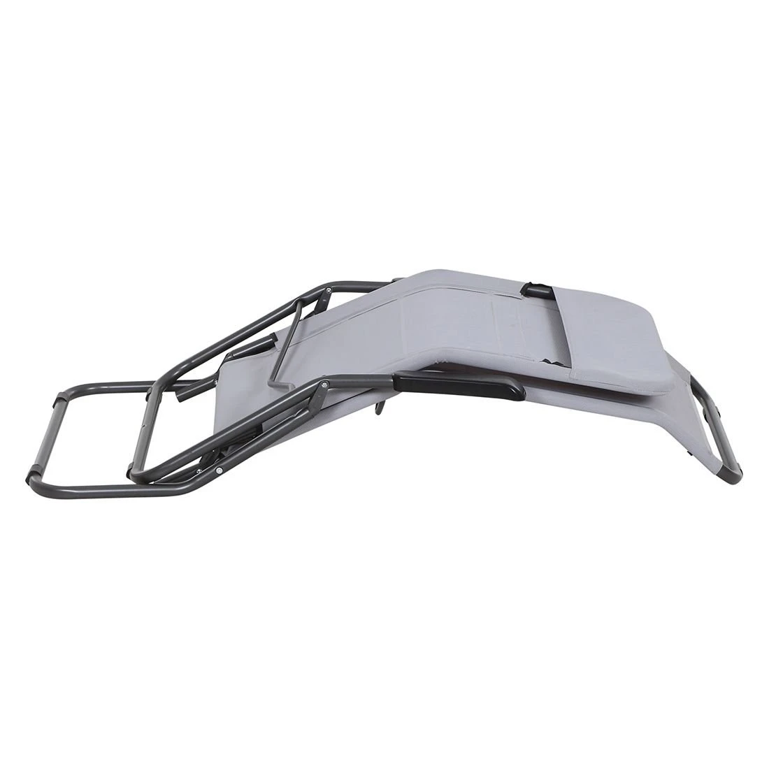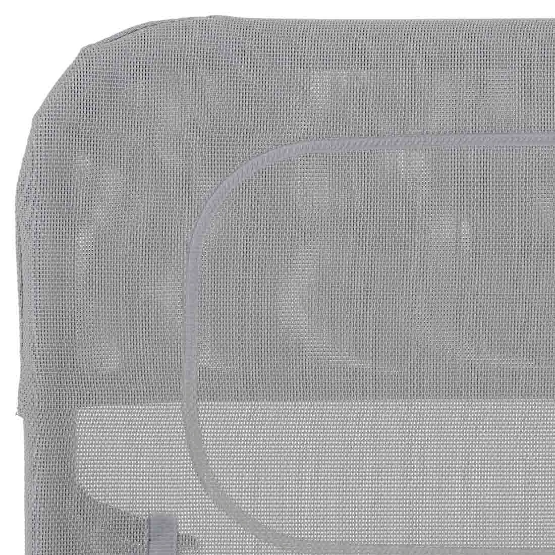 Das Gestell wird aus Stahl (Farbe: Anthrazit) gefertigt und sorgt damit für stabilen Halt beim Sitzen. Die Sitzfläche wird mit Textilene in der Farbe Hellgrau bespannt. Dieses Material ist reiß- und wetterfest und zeichnet sich durch eine hohe Beständigkeit gegenüber Hitze und Frost aus. Darüber hinaus ist Textilene leicht zu säubern.
