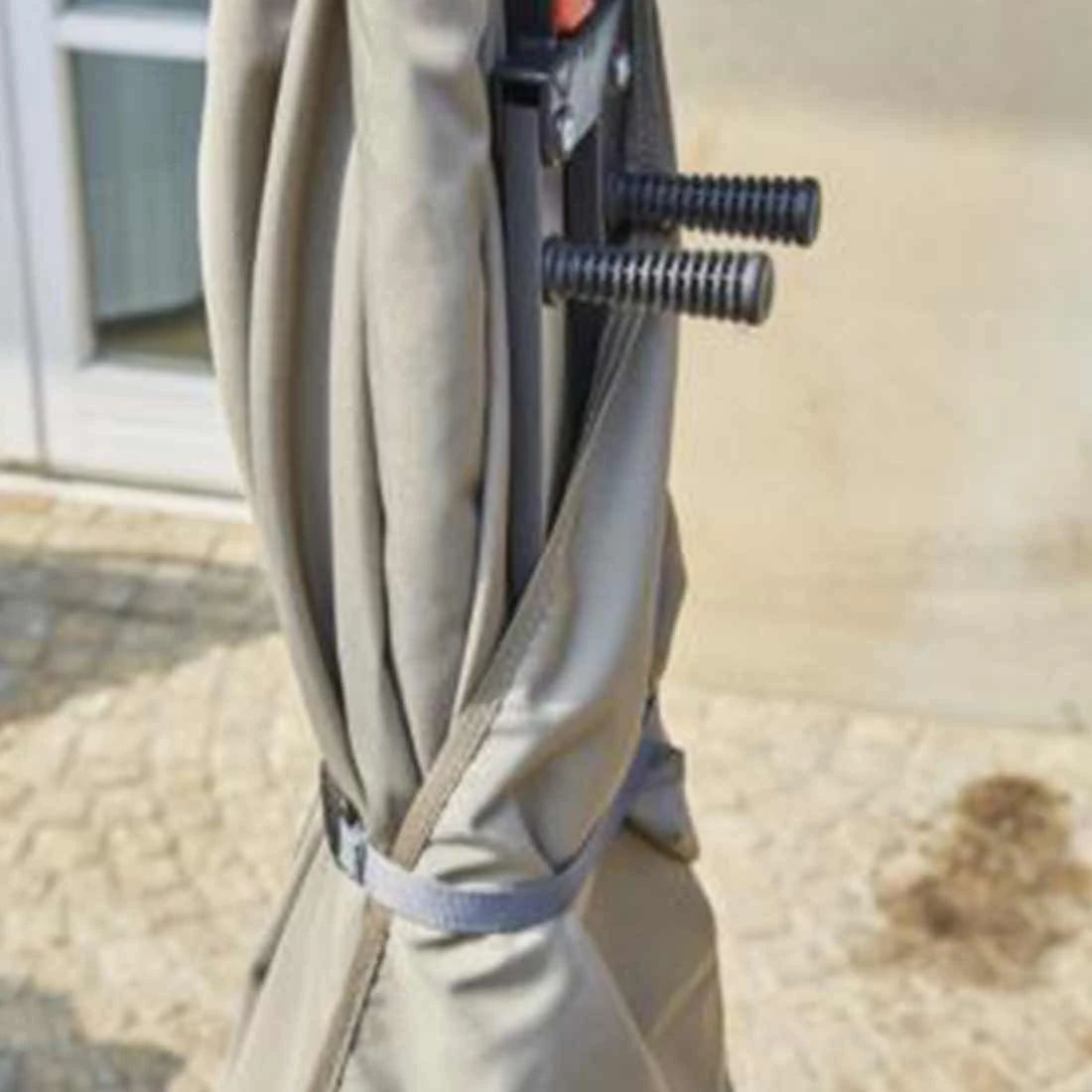 Wie bereits erwähnt, besteht das Gestell aus pulverbeschichtetem Stahl. Der Bezug ist aus Polyester gefertigt und mit dem Lichtschutzfaktor UPF 50+ versehen. So können Sie den Sichtschutz auch hervorragend am Strand als Schattenspender nutzen.