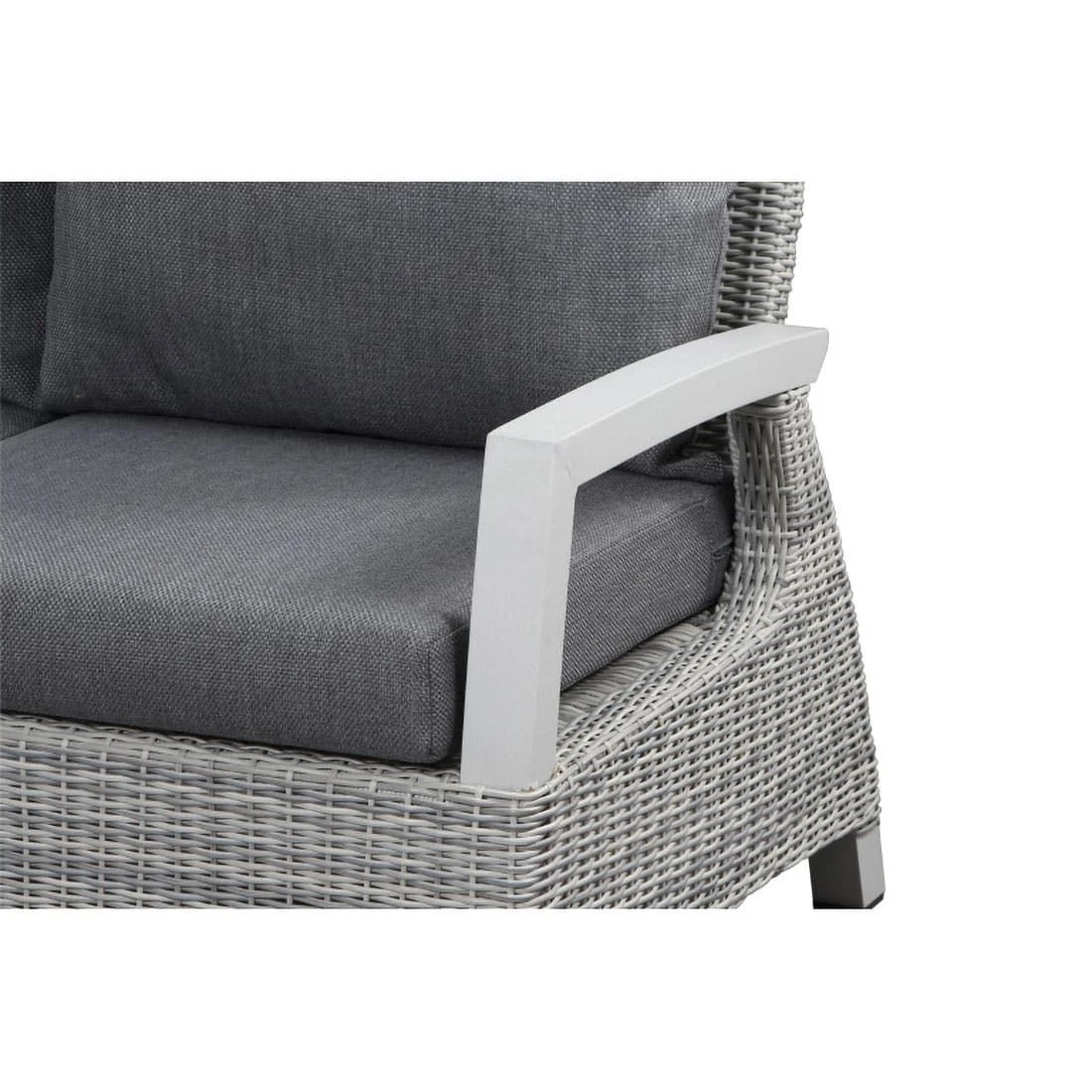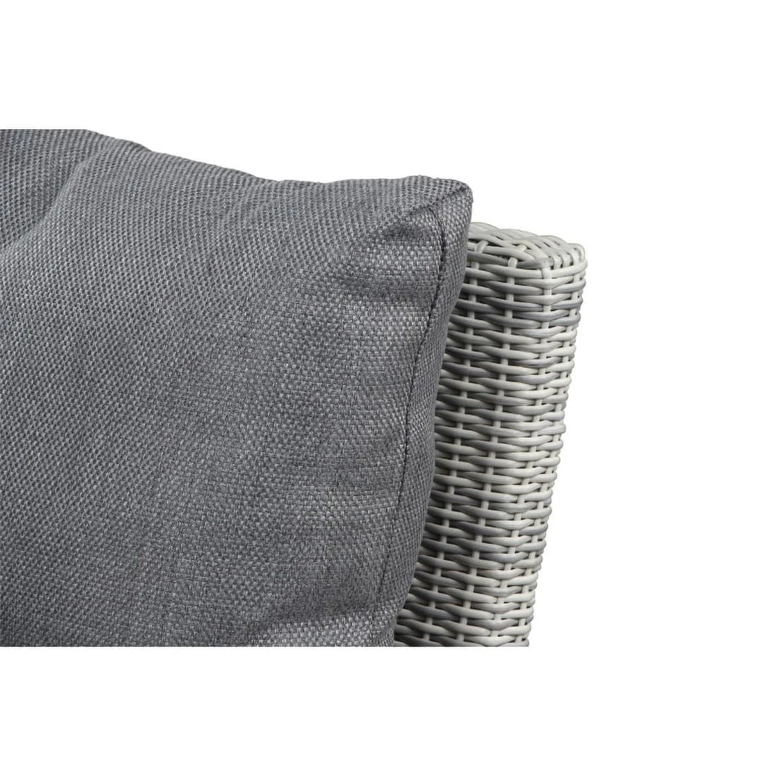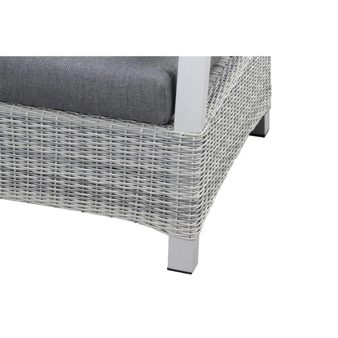 Damit das Eck-/Endmodul optisch ansprechend ist, sind der Korpus und die Sitzfläche im Farbton Ice Grey gehalten. Als Gestellmaterial hat der Hersteller qualitativ hochwertiges Aluminium gewählt. Optisch begeistert das Gestell in der Farbe Weiß. Das Gestell, das mit hochwertigem Polyrattan umflochten ist, bringt ein exklusives Ambiente auf Ihre Terrasse. Dieses Material zeichnet sich durch eine hohe Wetterbeständigkeit aus. Die Sitzfläche ist angenehm gepolstert. Als Bezug wird Polypropylen verwendet. Dieses Material ist besonders wetterfest. Die Farbe des Bezugs ist Stone Grey.