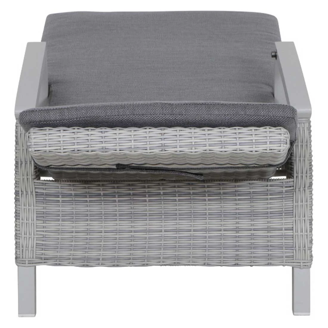 Das Gestell besteht aus pflegeleichtem und wetterfestem Aluminium in der Farbe Ice Grey.