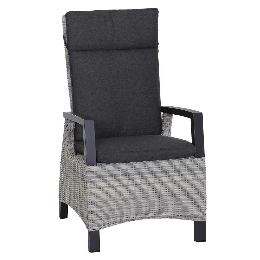 Der Korpus und die Sitzfläche bestehen aus Gardino®-Geflecht. Damit der Gartensessel optisch ansprechend ist, sind der Korpus und die Sitzfläche im Farbton Ice Grey gehalten. Gestell und Bezug begeistern hingegen in Ice Grey.