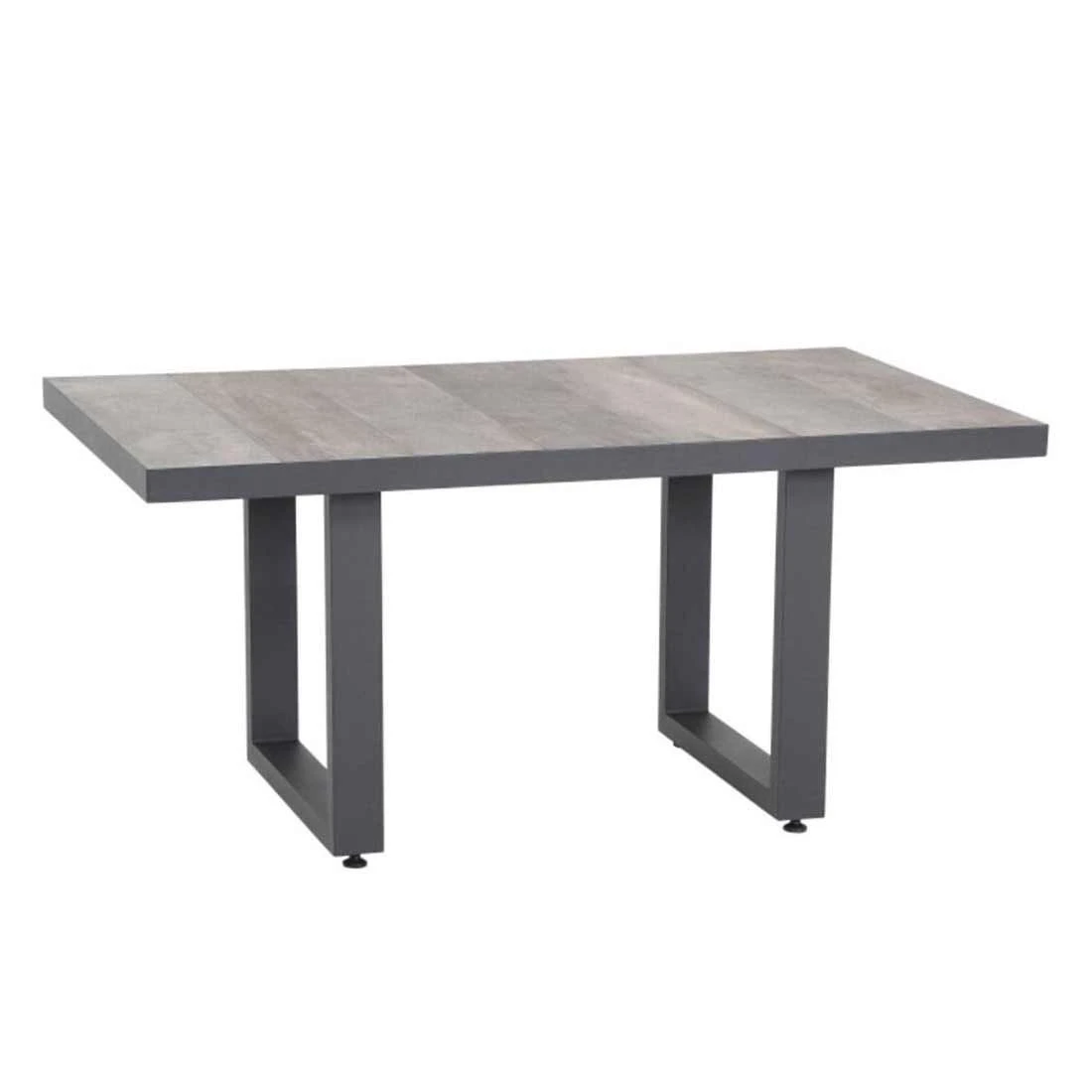 Für die Tischplatte wird Keramik verwendet. Solche Platten sind stoß-, schlag- und schnittbeständig und zählen somit zu den stabilsten Tischplatten auf dem Gartentisch-Markt.
