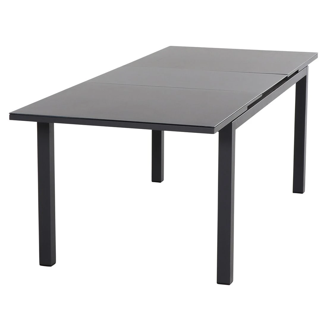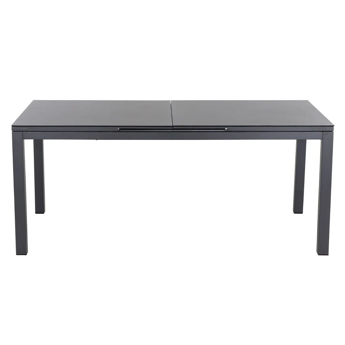Klassisch aus vier Tischbeinen besteht das Gestell des Tisches. Die Tischplatte besteht aus Glaskeramik, weshalb Sie den Ausziehtisch optimal im Garten oder auf der Terrasse verwenden können. Farblich ist die Platte in Dark Concrete gehalten. Das Design des Ausziehtisches ist klassisch rechteckig gestaltet.