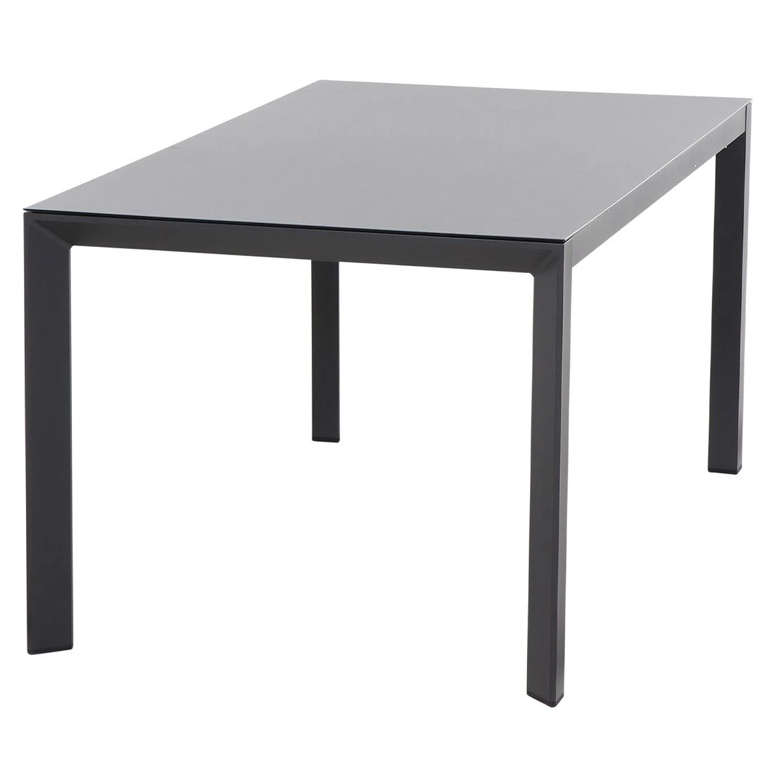 Das klassische Vierfuß-Gestell garantiert Ihnen maximale Beinfreiheit. Beim Tischplatten-Material handelt es sich um Glaskeramik, weshalb Sie den Gartentisch optimal im Garten oder auf der Terrasse verwenden können. Für ein elegantes Gesamtbild erscheint die Platte in der Farbe Dark Concrete. Der Gartentisch ist klassisch rechteckig gestaltet.