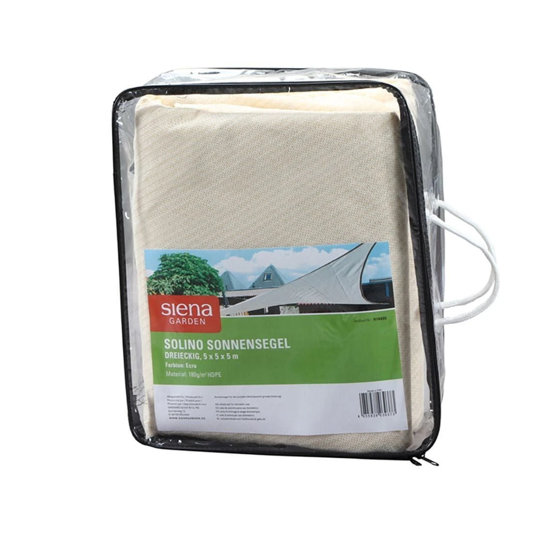 Dieses Sonnensegel stellt eine echte Bereicherung für Ihre Terrasse dar. Das große Sonnensegel in dreieckiger Form ermöglicht Ihnen das Arbeiten und Entspannen im Freien trotz direkter Sonneneinstrahlung. So können Sie und Ihre Kinder mehr Zeit in Ihrem Garten oder auf Ihrem Balkon verbringen ohne Ihre Gesundheit durch schädliche UV-Strahlung zu belasten. Da das Material luft- und wasserdurchlässig ist, können Sie Ihren neuen Schattenspender ohne Probleme den ganzen Sommer über hängen lassen. Wohlfühlmöbel für den Außenbereich – dies hat sich die Gartenmöbelmarke Siena Garden auf die Fahnen geschrieben. Auch das Sonnensegel Solino steht diesen Ansprüchen in nichts nach.