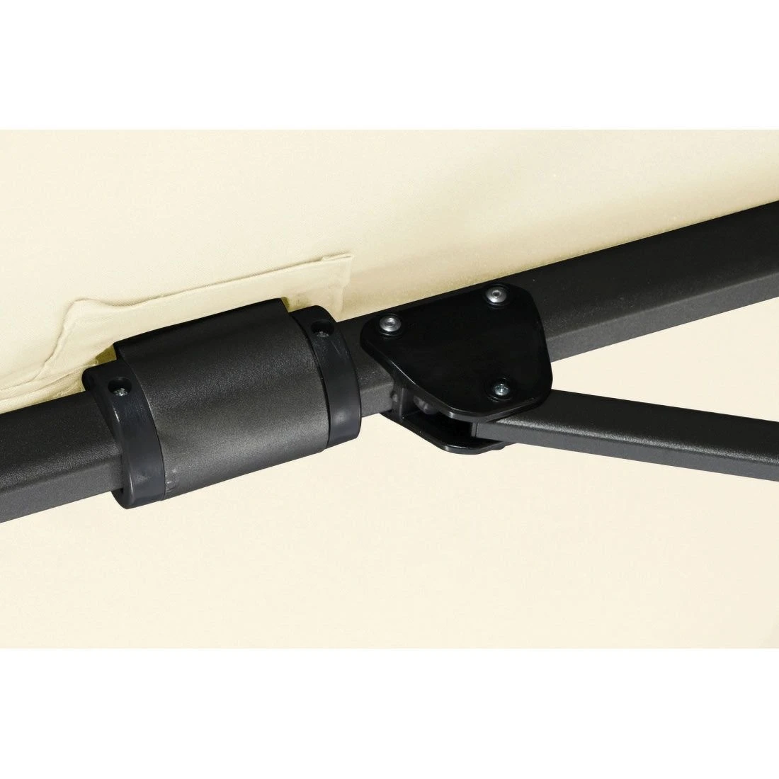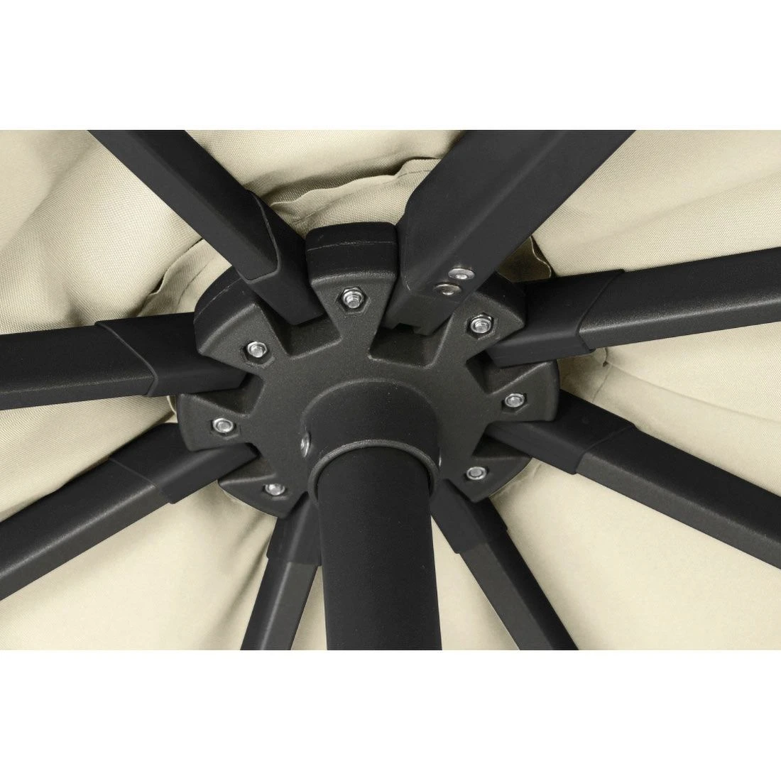 Die Durchgangshöhe dieses Sonnenschirms beträgt abhängig der Schirmgröße ca. 195-200 cm. Aufspannen lässt sich der Sonnenschirm ganz einfach durch die Betätigung der Kurbel. Bei diesem Sonnenschirm-Modell ist das Schirmdach sowohl aufstellbar als auch nach rechts oder links neigbar. Ganz bequem per Fußpedal lässt sich der Ampelschirm so drehen, wie man ihn gerade braucht.
