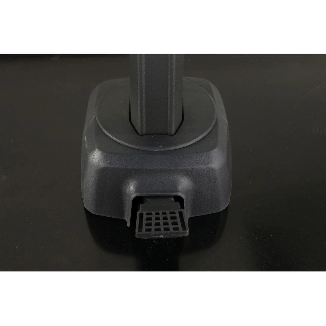 Die Herstellerempfehlung des Sockelgewichts für diese Schirmserie beträgt mindestens 90kg. Wir empfehlen insbesondere bei windanfälligen Standorten ein Ständergewicht von ca. 120kg einzusetzen