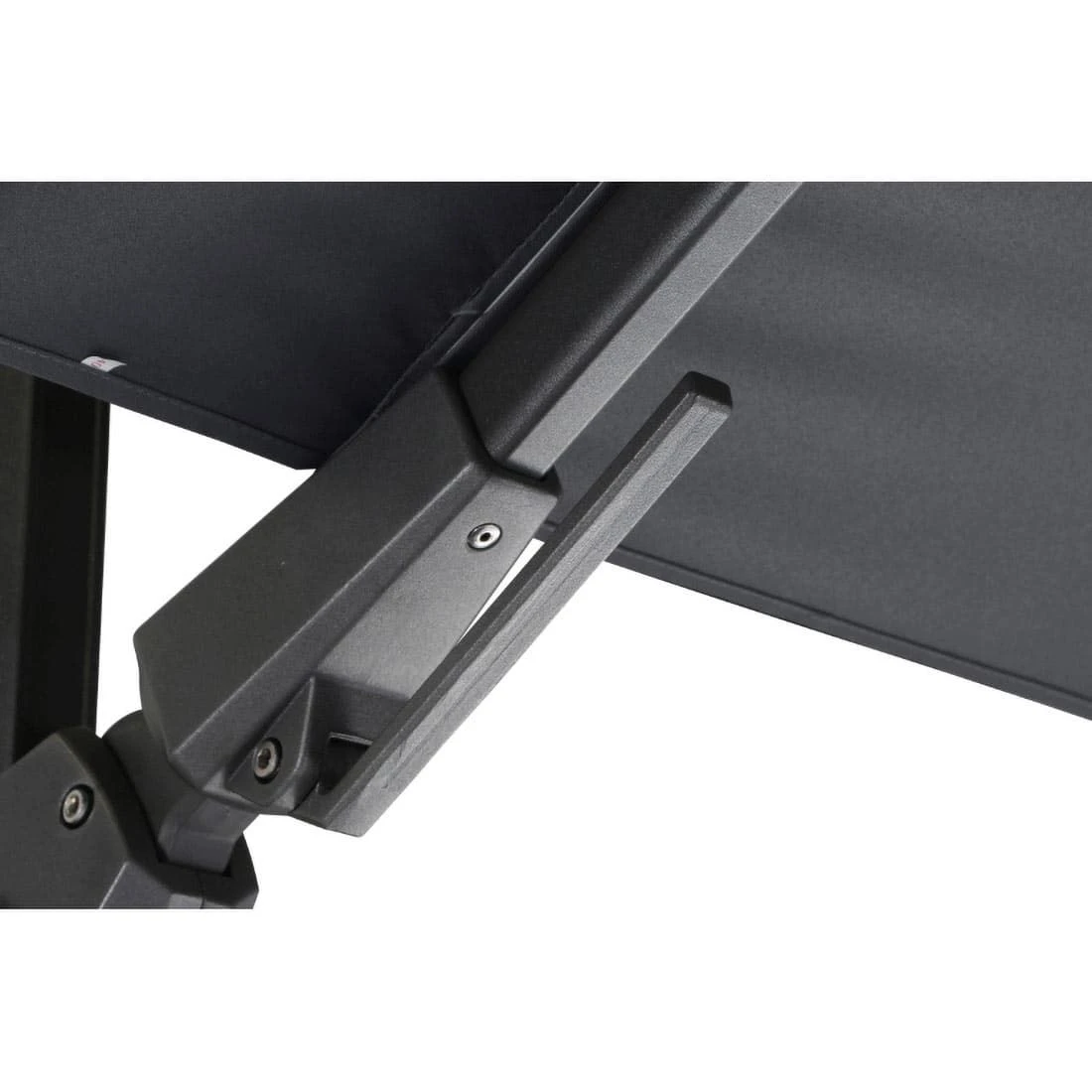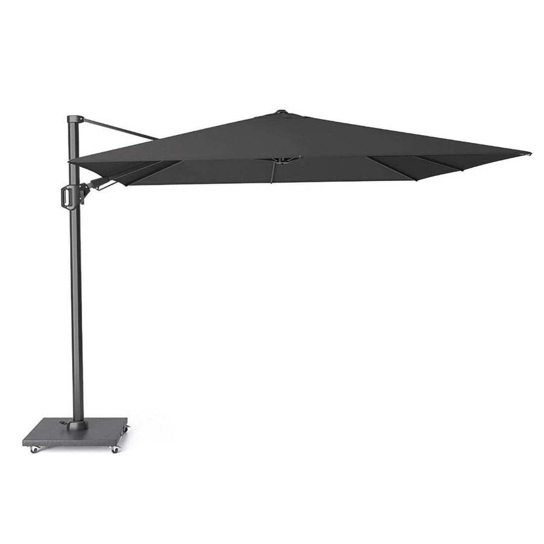 Die Durchgangshöhe dieses Sonnenschirms beträgt abhängig der Schirmgröße ca. 195-200 cm. Aufspannen lässt sich der Sonnenschirm ganz einfach durch die Betätigung der Kurbel. Bei diesem Sonnenschirm-Modell ist das Schirmdach sowohl aufstellbar als auch nach rechts oder links neigbar. Ganz bequem per Fußpedal lässt sich der Ampelschirm so drehen, wie man ihn gerade braucht.