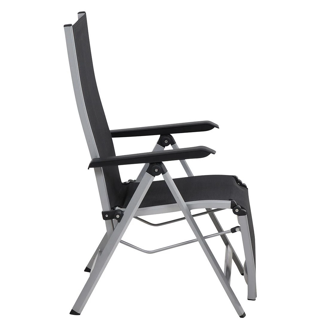 Die Sitzfläche wird mit Ranotex-Gewebe in der Farbe Grau bespannt. Dieses Material ist wetterfest und zeichnet sich durch eine hohe UV-Beständigkeit aus. Zudem ist es sehr luftdurchlässig und trocknet nach dem Regenguss sehr zügig.