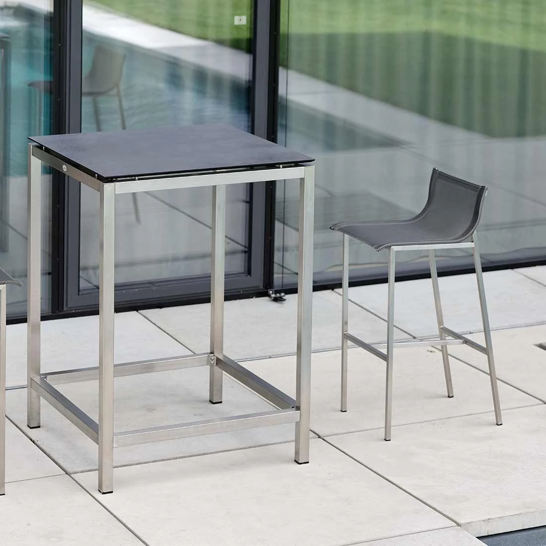 Das Gestell des Garten-Barstuhls besteht aus hochwertigem und pflegeleichtem Edelstahl. Neben seiner ansprechenden Optik bietet dieses Material auch eine hohe Stabilität. Für eine attraktive Optik ist das Gestell im Farbton Silber gehalten. Ein weiteres Highlight des Garten-Barstuhls ist die Bespannung mit Textilene. Dieser Bezugsstoff überzeugt durch eine hohe Robustheit gegenüber Hitze und Frost und ist leicht zu reinigen. Die Sitzfläche ist in ansprechendem Silbergrau gehalten.