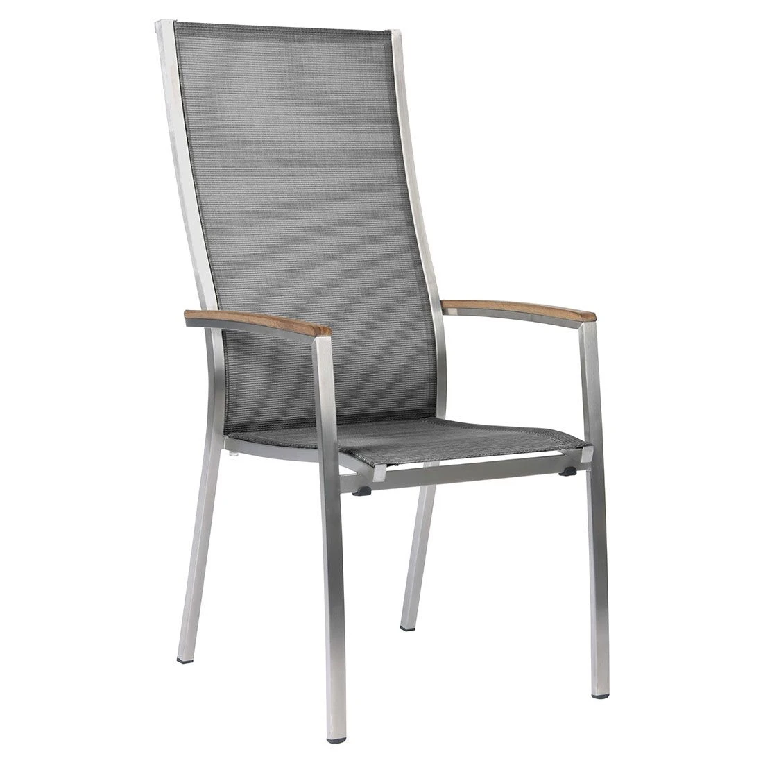 Für die Bespannung der Sitzfläche verlässt sich der Hersteller auf hochwertiges Textilene. Es zeichnet sich durch eine hohe Robustheit gegenüber Hitze und Frost aus und ist leicht zu reinigen. Der Clou: Die Stapelbarkeit des Modells Cardiff ermöglicht es Ihnen, auch mehrere Exemplare platzsparend aufzubewahren. Die Sitzbreite von 44 cm und die Sitztiefe von 46 cm machen den Stapelsessel besonders komfortabel. Die Sitzhöhe liegt zudem bei angenehmen 45 cm.