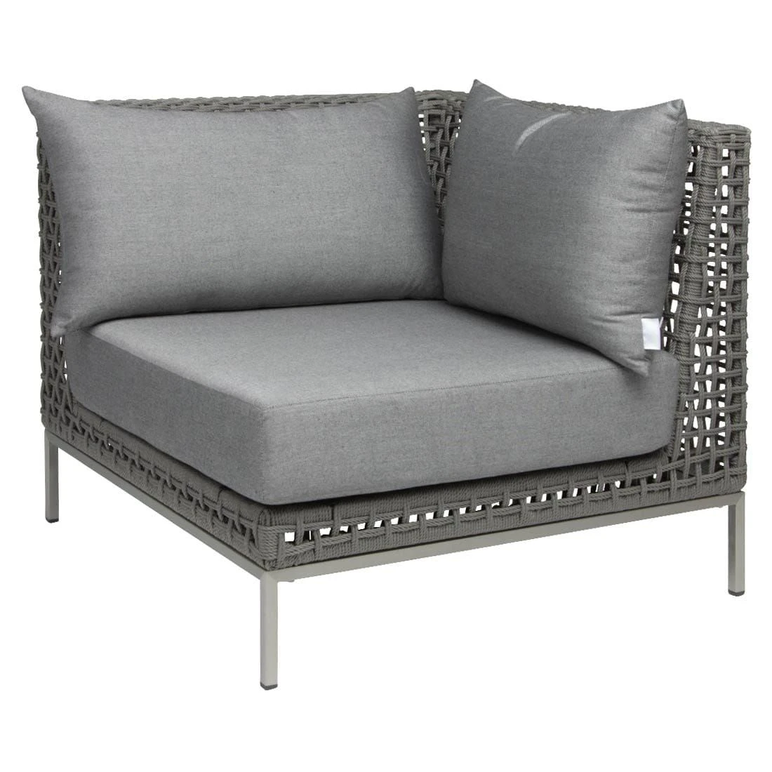 Damit das Eck-/Endmodul optisch ansprechend ist, sind die Sitzfläche und der Bezug im Farbton Seidengrau gehalten. Das Gestell besteht aus Aluminium. Optisch begeistert das Gestell in der Farbe Anthrazit. Hochwertiges Rope umgibt das robuste Gestell und verleiht dem Eck-/Endmodul damit einen ganz besonderen Look. Farblich ist der Korpus des Eck-/Endmoduls in ansprechendem Platin gehalten. Der Bezug des Eck-/Endmoduls ist aus Polyacryl gefertigt. Dieses Material begeistert mit einer hohen Witterungsbeständigkeit. Regen kann dem robusten Outdoor-Stoff kaum etwas anhaben.