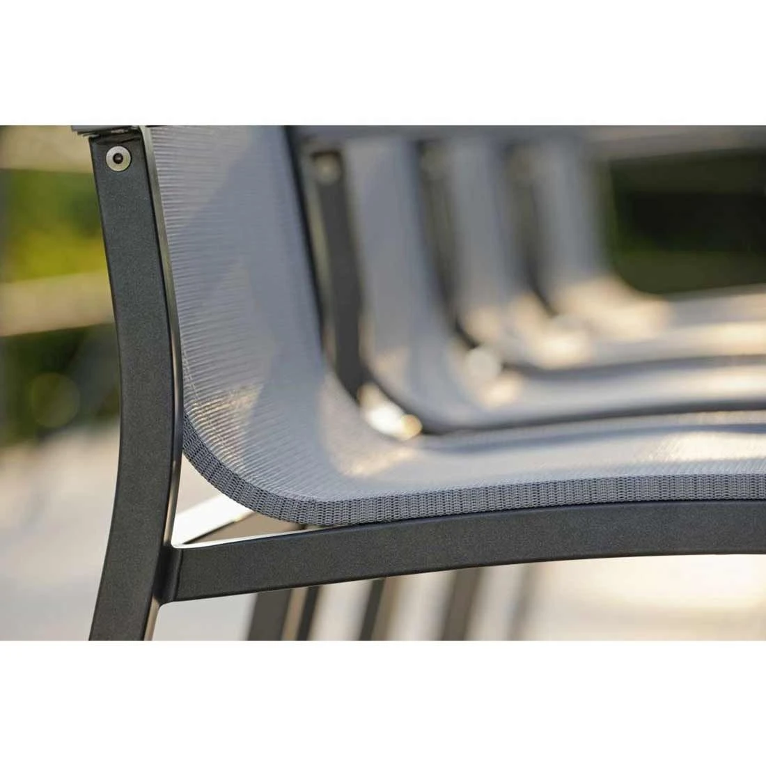 Die robusten Metallgestelle aus Aluminium sind pflegeleicht und garantieren gleichzeitig eine hohe Stabilität. Darüber hinaus gewährleistet dieses leichte Material, dass Sie die Möbel bequem transportieren können. Ein weiterer Pluspunkt der Sitzmöbel ist die Bespannung der Sitzflächen mit Textilene. Dieses Material zeichnet sich durch eine hohe Robustheit gegenüber Hitze und Frost aus und ist leicht zu reinigen.
