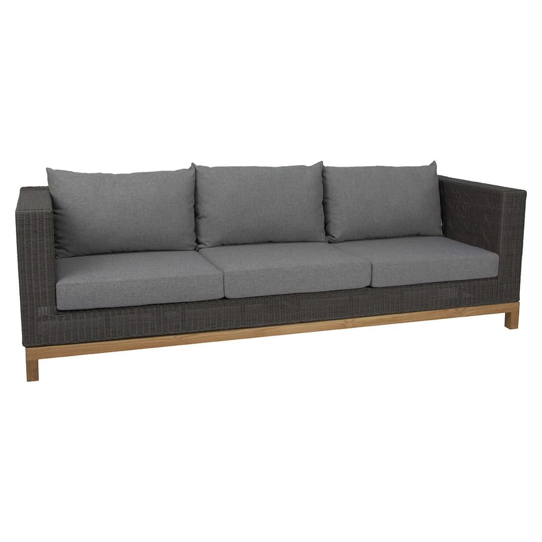 Der Korpus und die Sitzfläche bestehen aus Polyrattan-Geflecht. Damit das Gartensofa optisch ansprechend ist, sind der Korpus und die Sitzfläche im Farbton Basaltgrau gehalten. Das warme und wetterfeste Gestell aus Teakholz bringt ein natürliches Flair auf Ihre Terrasse. Optisch begeistert das Gestell in der Farbe Natur. Die Farbe des Bezugs ist Seidengrau.
