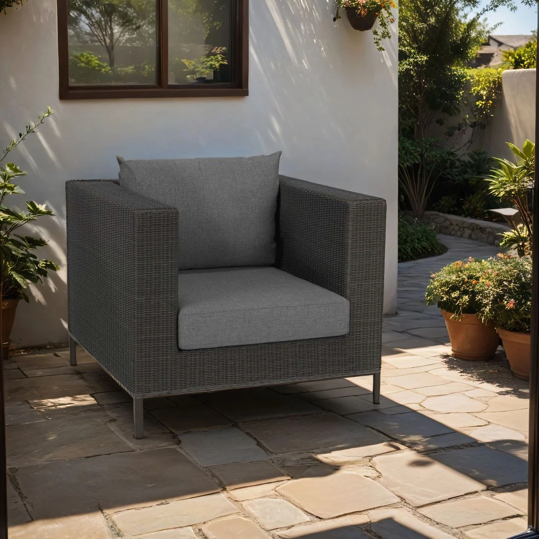 Das Gestell besteht aus pflegeleichtem und wetterfestem Aluminium in der Farbe Anthrazit. Ein Material, das mit seiner Robustheit überzeugt. Das Gestell, das mit hochwertigem Polyrattan umflochten ist, bringt ein exklusives Ambiente auf Ihre Terrasse. Dieses Material zeichnet sich durch eine hohe Wetterbeständigkeit aus. Die Sitzfläche, die mit hochwertigem Polyrattan umflochten ist, bringt ein natürliches Ambiente auf Ihre Terrasse. Dieses Material zeichnet sich durch eine hohe Wetterbeständigkeit aus.