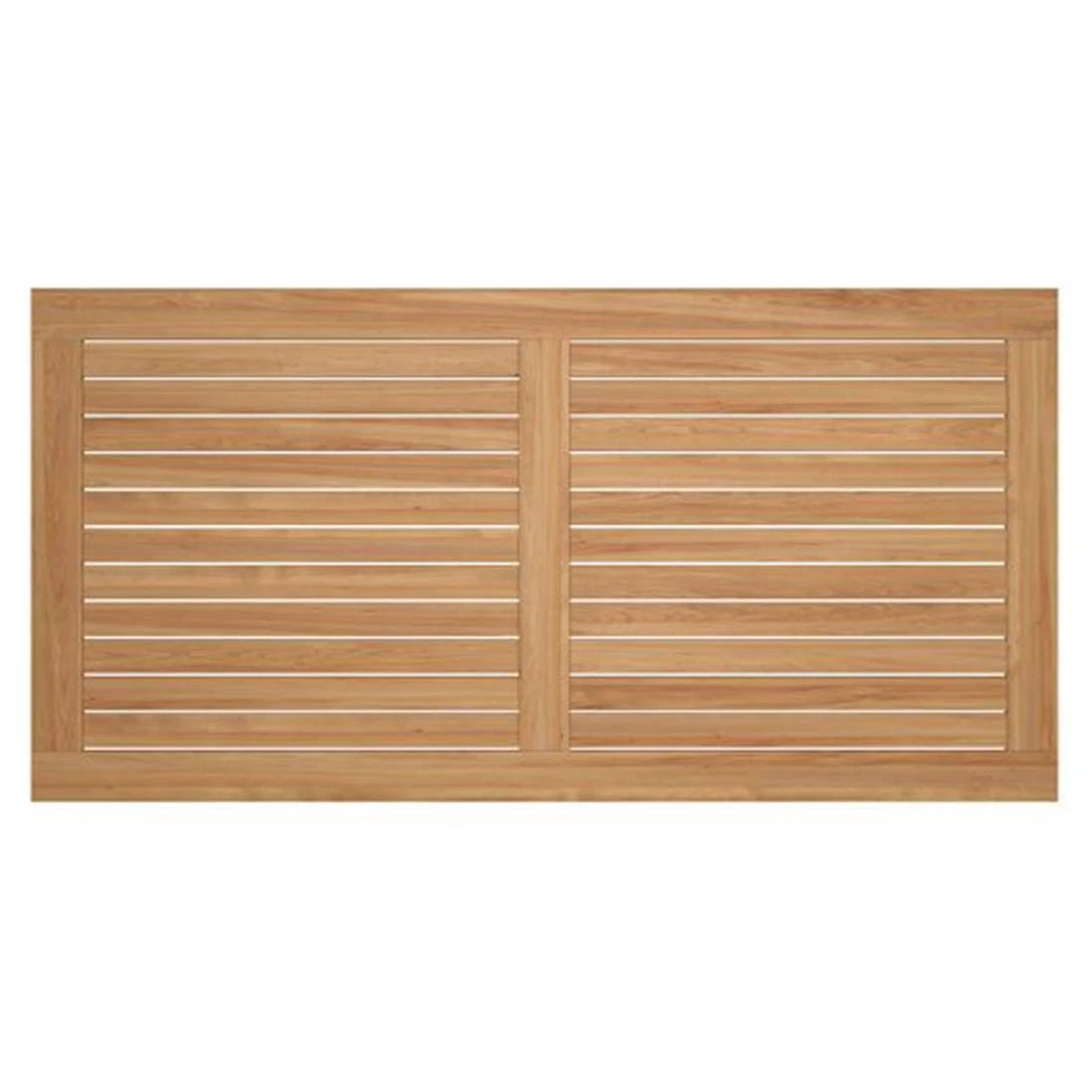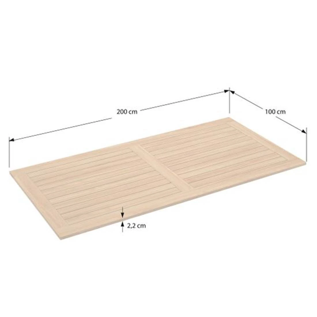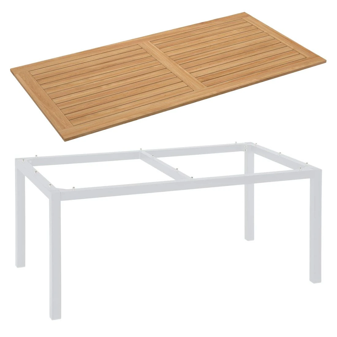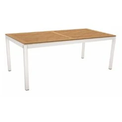 Dank des Gestell-Materials Aluminium zählt der Gartentisch zu den modernen Tischmodellen, die sich auf der Terrasse problemlos aufstellen und bewegen lassen. Die Tischplatte ist aus wertigem Teakholz gefertigt. Aufgrund des sehr hohen natürlichen Ölanteils ist sie bereits von Haus aus wunderbar vor Witterungseinflüssen geschützt. Farblich ist die Platte in Natur gehalten. Der Gartentisch ist klassisch rechteckig gestaltet.