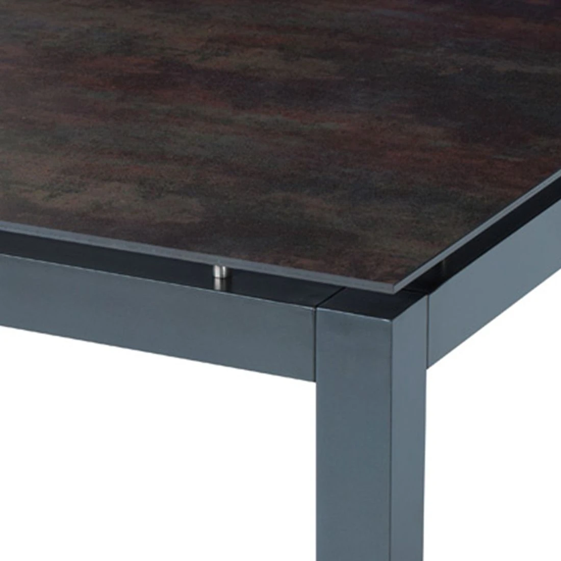 Die edle Tischplatte besteht aus Lavastar. Dieses Material ist schön wie Porzellan, leichter als Aluminium und härter als Granit. Bei der Produktion wird die Tischplatte mit einer Kraft von 15.000 Tonnen pro Quadratmeter verdichtet und anschließend gebrannt. Lavastar ist ein hundertprozentiges Naturprodukt und wird aus den gleichen Rohstoffen wie herkömmliches Porzellangeschirr hergestellt. Es ist hitze-, frost und UV-beständig. Für ein elegantes Gesamtbild erscheint die Platte in der Farbe Braun/Schwarz.
