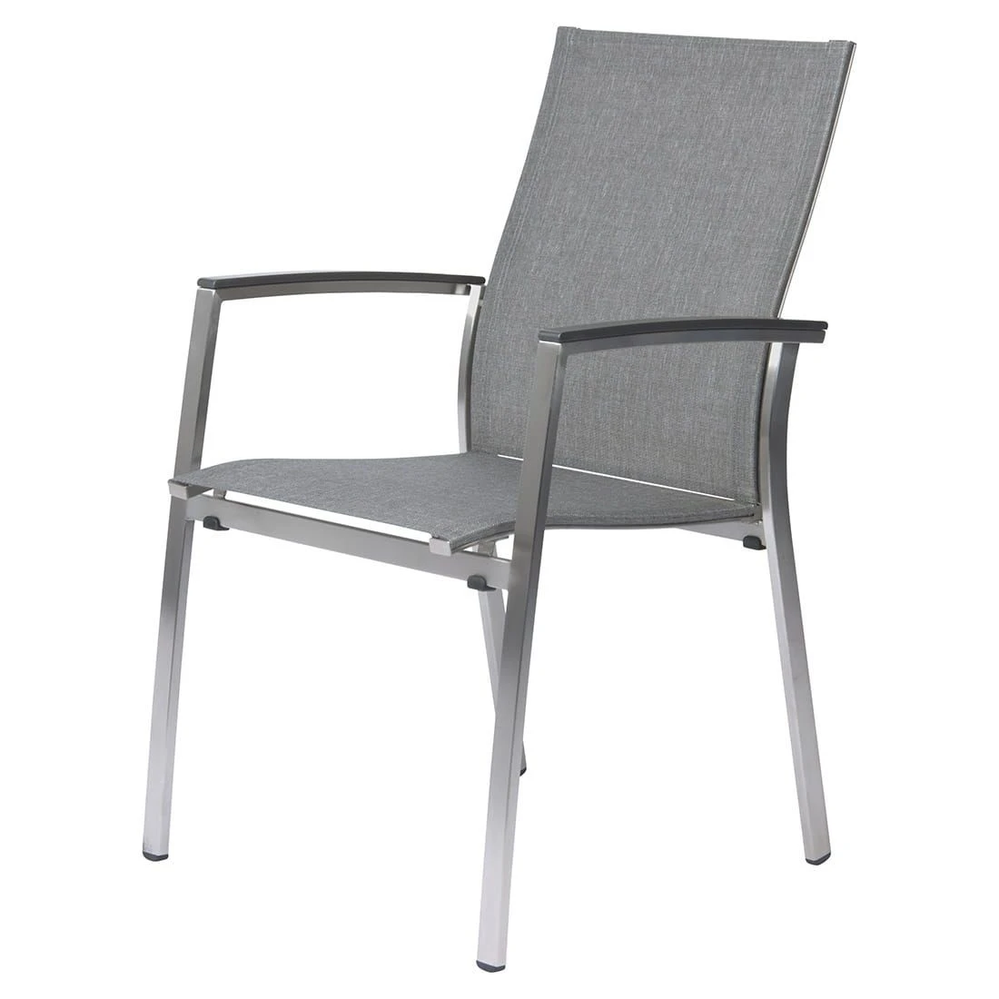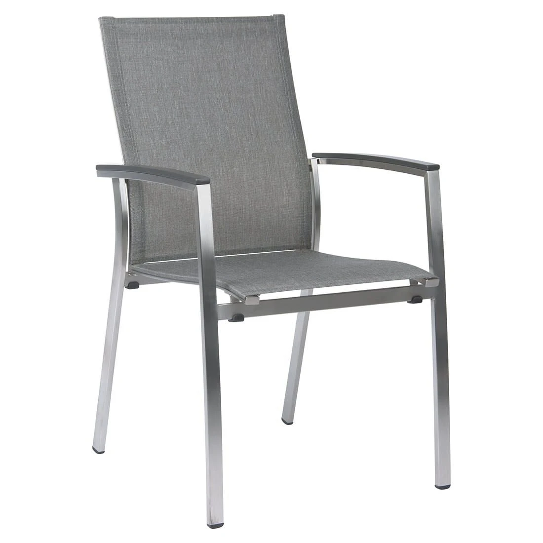 Ein weiterer Pluspunkt des Stapelsessels ist die Bespannung mit Textilene in der Farbe Grau. Dieser Bezugsstoff ĂŒberzeugt durch eine hohe Robustheit gegenĂŒber Hitze und Frost aus und ist leicht zu reinigen. Sehr praktisch: Die Stapelbarkeit des Modells Mika ermöglicht es Ihnen, auch mehrere Exemplare platzsparend aufzubewahren. Der Stapelsessel ist bis zu einem Gewicht von 120 kg belastbar. Die Sitzbreite von 45 cm und die Sitztiefe von 45 cm machen den Stapelsessel besonders komfortabel. Die Sitzhöhe liegt zudem bei angenehmen 45 cm.
