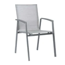 Für die Herstellung des Gestells wird hochwertiges und wetterfestes Aluminium verwendet. Farblich ist dieses in Graphit gehalten. Für die Bespannung der Sitzfläche verlässt sich der Hersteller auf hochwertiges Textilene. Es zeichnet sich durch eine hohe Robustheit gegenüber Hitze und Frost aus und ist leicht zu reinigen. Das robuste Kufengestell lässt sich hervorragend in moderne Stile integrieren. Ihr Vorteil: Wenn Sie mehrere Exemplare des Modells New Top Edition Falun besitzen, können Sie diese äußerst kompakt und platzsparend aufbewahren, indem Sie diese stapeln. Die Sitzbreite von 45 cm und die Sitztiefe von 42 cm machen den Stapelsessel besonders komfortabel. Die Sitzhöhe liegt zudem bei angenehmen 45 cm.