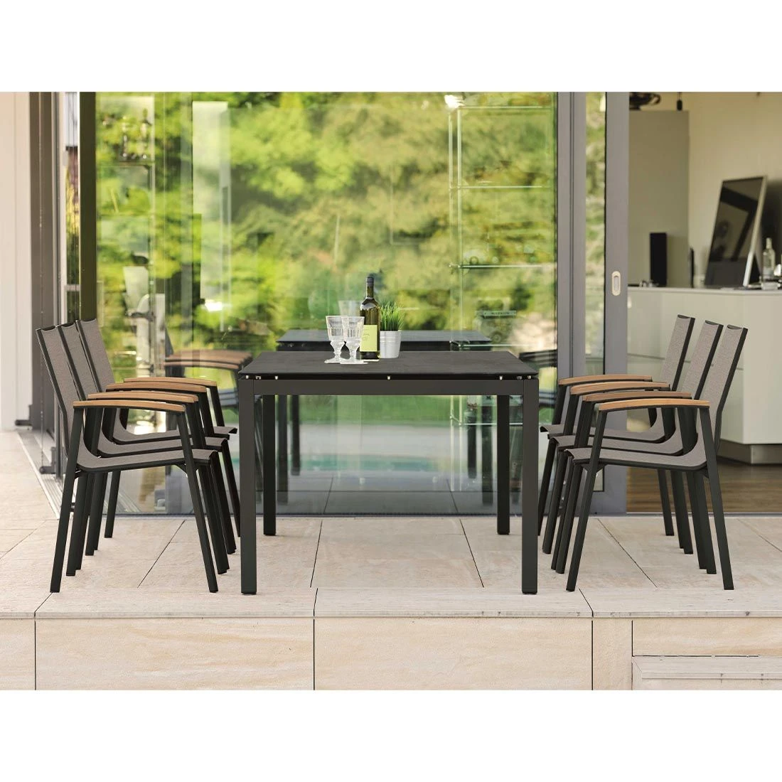 Ein weiterer Pluspunkt des Stapelsessels ist die Bespannung mit Textilene in der Farbe Leinen Grau. Dieser Bezugsstoff überzeugt durch eine hohe Robustheit gegenüber Hitze und Frost aus und ist leicht zu reinigen. Ihr Vorteil: Die Stapelbarkeit des Modells New Top ermöglicht es Ihnen, auch mehrere Exemplare platzsparend aufzubewahren. Die Sitzbreite von 45 cm und die Sitztiefe von 42 cm machen den Stapelsessel besonders komfortabel. Die Sitzhöhe liegt zudem bei angenehmen 45 cm.