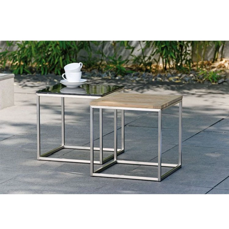 Das Gestell ist aus rostfreiem und pflegeleichtem Edelstahl gefertigt und sehr windsicher im Garten. Teakholz ist außerordentlich widerstandsfähig gegen Witterungseinflüsse wie Schwankungen der Temperatur, Nässe und Trockenheit. Kein Wunder, dass für den Beistelltisch dieses hochwertige Holz als Material für die Tischplatte verarbeitet wurde. Farblich ist die Tischplatte in einem schönen Teak gehalten. Den finalen Schliff erhält das Gestell durch seine attraktive Säulenform. Diese ist nicht nur ein absoluter Blickfang, sondern ermöglicht auch rundherum viel Beinfreiheit. Mit der kompakten quadratischen Form sorgt der Beistelltisch auch auf kleinem Raum für Gemütlichkeit.