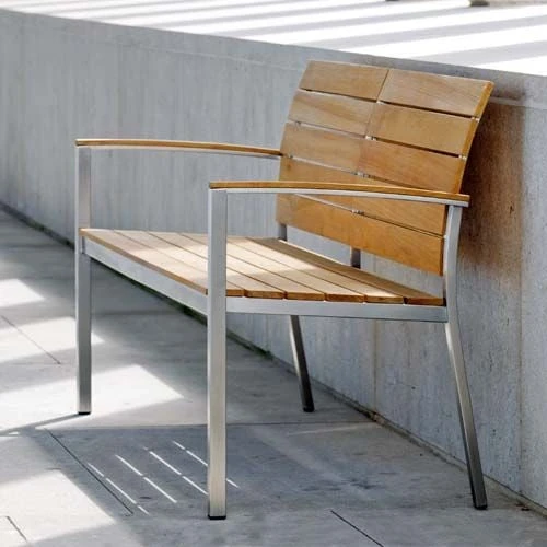 Der Korpus und die Sitzfläche bestehen aus Teakholz. Das Gestell wird aus hochwertigem und rostfreiem Edelstahl hergestellt. Aufgrund des etwas höheren Eigengewichts, steht die Gartenbank dadurch besonders stabil und windsicher auf der Terrasse. Für eine attraktive Optik ist das Gestell im Farbton Silber gehalten. Die Sitzfläche hat eine elegante Farbgebung in Teak Natur.