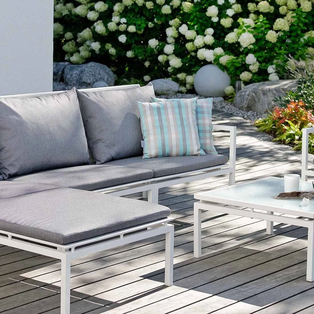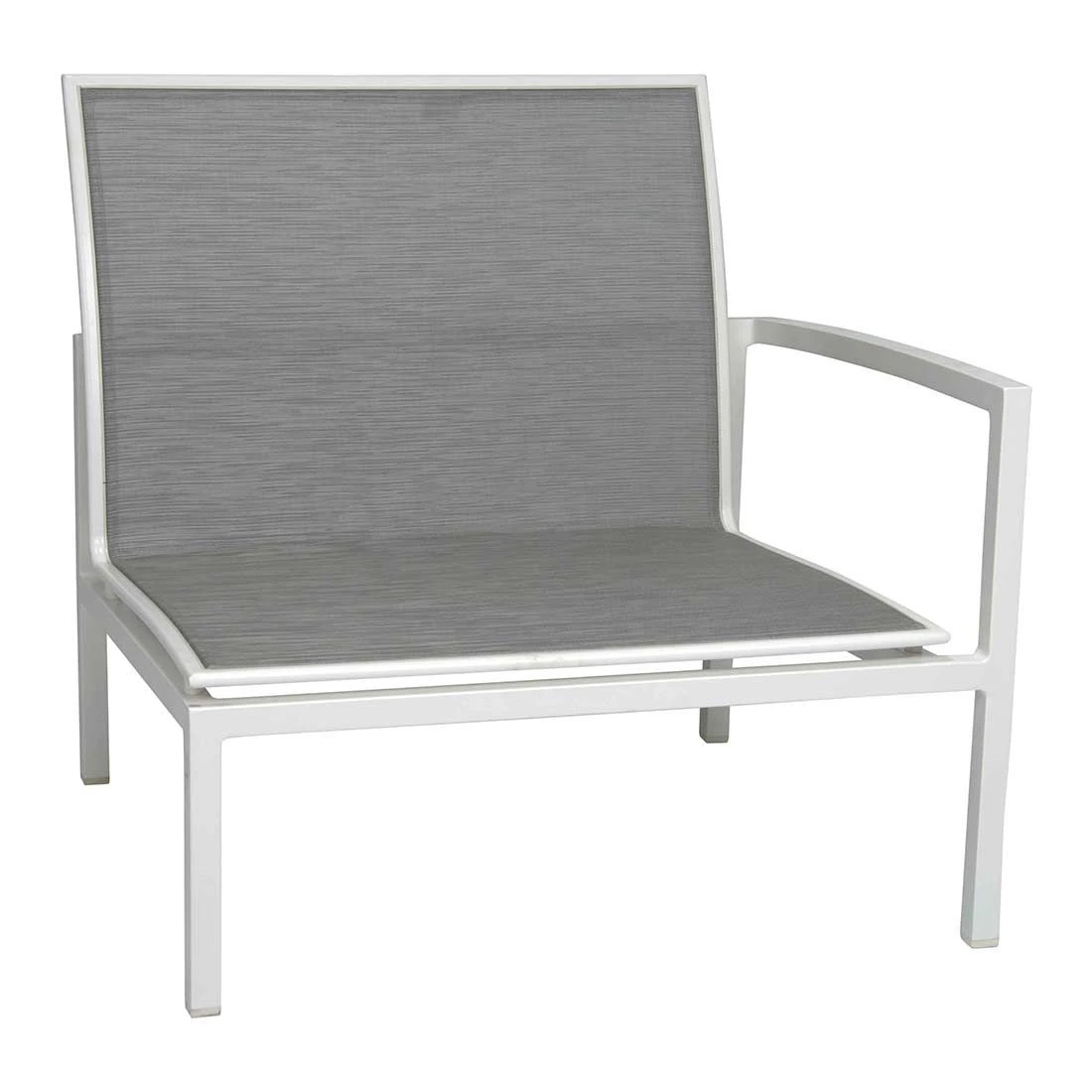Als Gestellmaterial hat der Hersteller wertiges Aluminium gewählt. Optisch begeistert das Gestell in der Farbe Weiß. Für die Bespannung der Sitz- und Rückenfläche wird hochwertiges Textilene verwendet. Es zeichnet sich durch eine hohe Robustheit gegenüber Hitze und Frost aus und ist leicht zu reinigen.