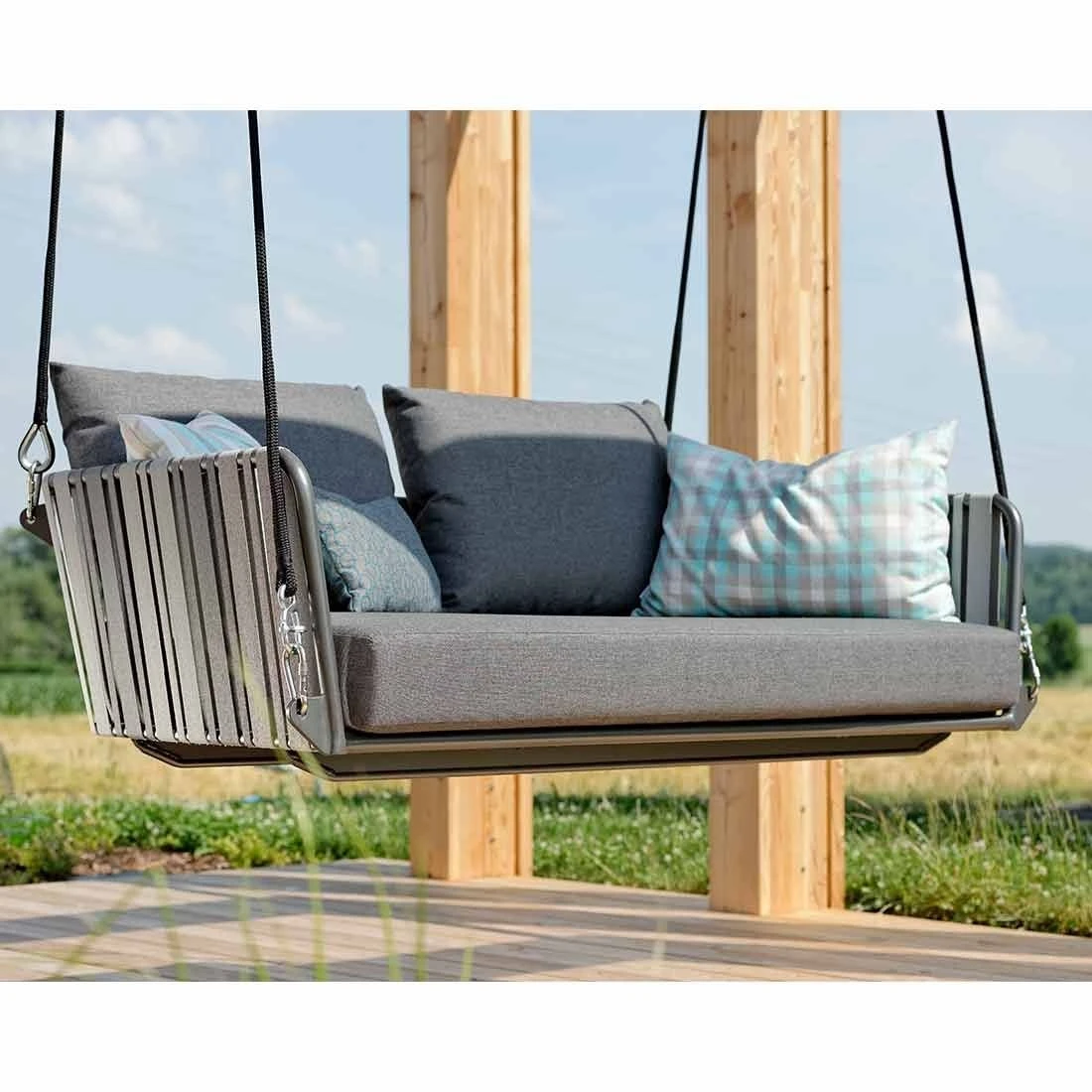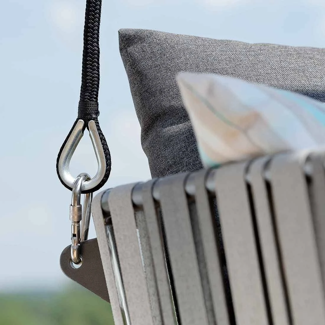 Einfach mal die Seele baumeln lassen oder entspannt ein Buch lesen – Der Stern Hängesessel Space ist hierfür der ideale Rückzugsort im Garten.