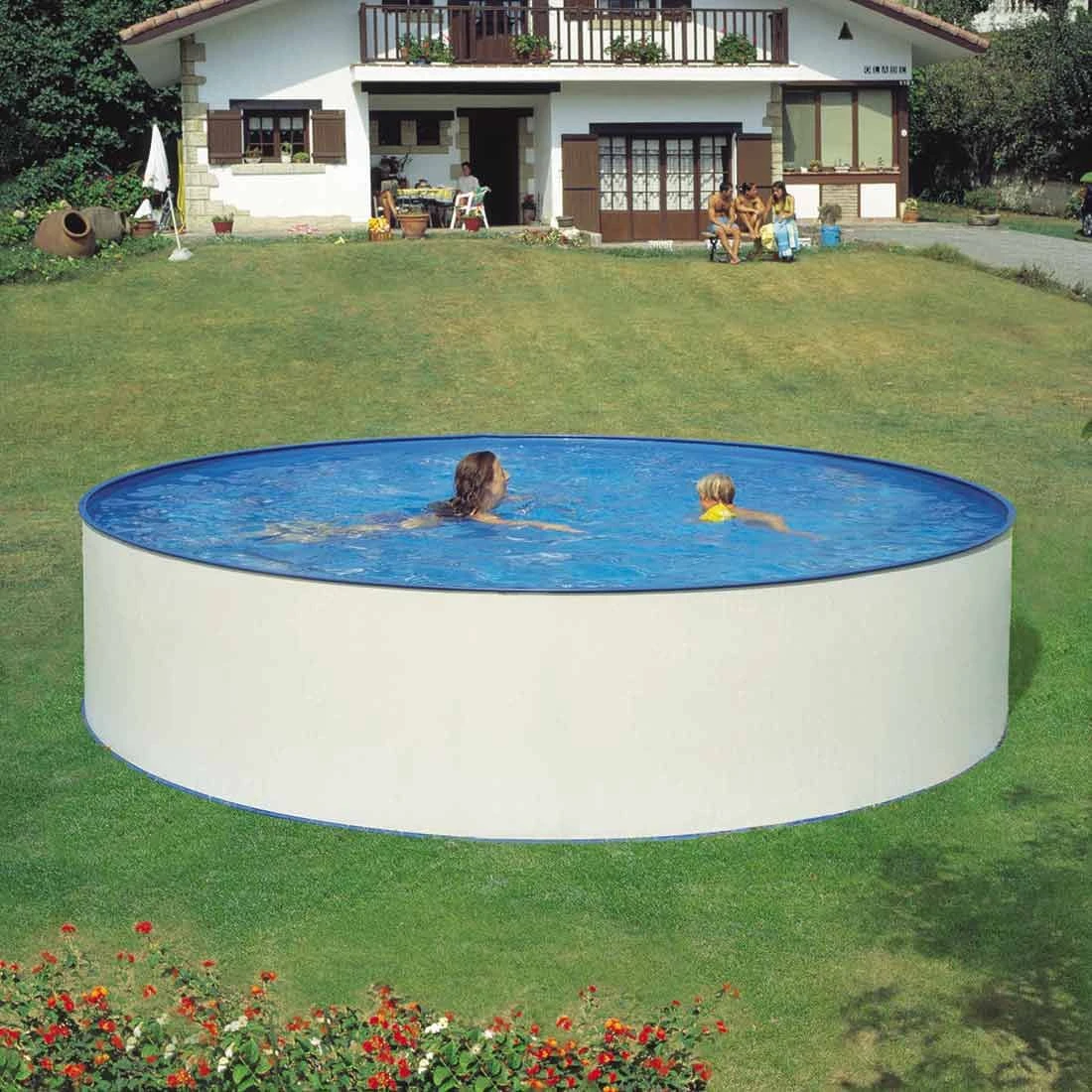 - PVC-Folienauskleidung 0,2 mm, frostbeständig und UV-stabilisiert, adriablau, überlappend (ohne Biese, wird einfach über den Beckenrand gelegt und mit dem Handlauf fixiert)