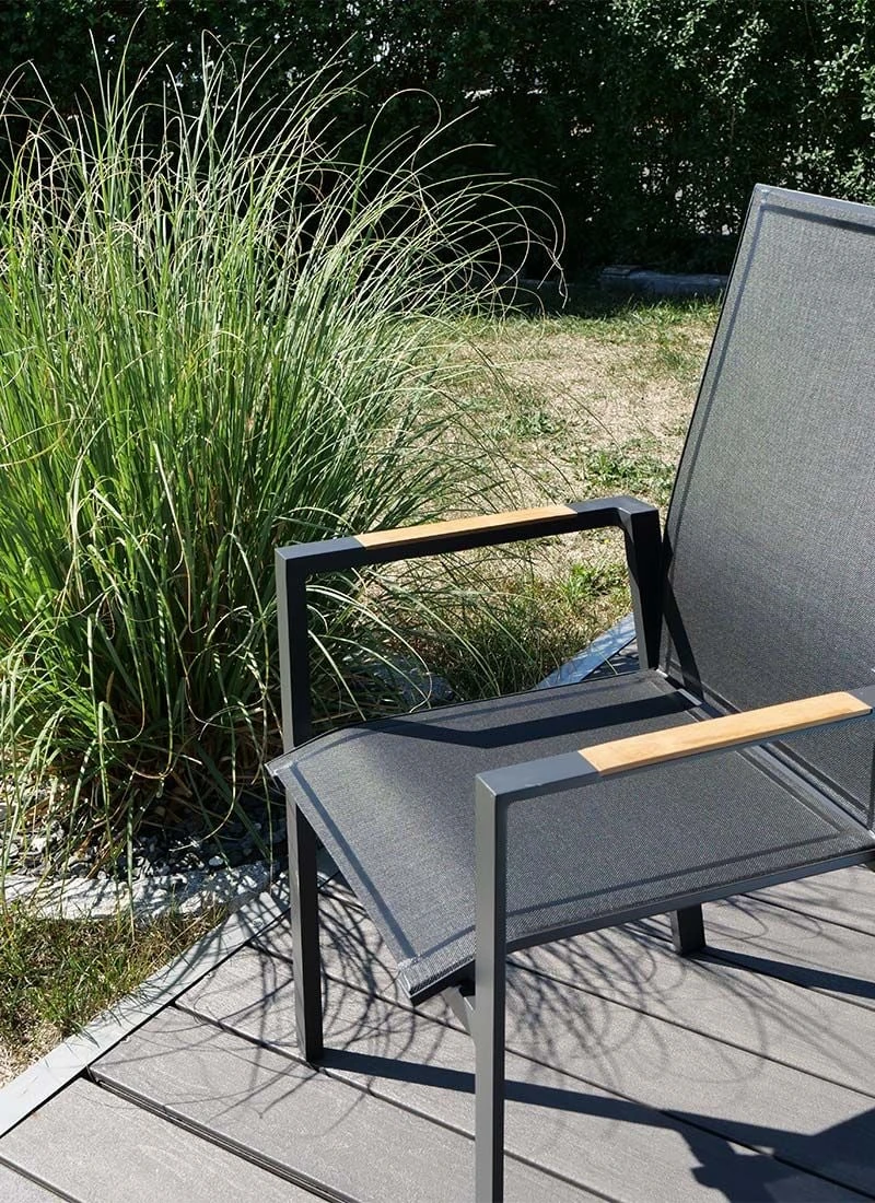 Ein weiteres Highlight des Stapelsessels ist die Bespannung mit Textilene in der Farbe Schwarz. Dieser Bezugsstoff überzeugt durch eine hohe Robustheit gegenüber Hitze und Frost aus und ist leicht zu reinigen. Der Clou: Die Stapelbarkeit des Modells Bamberg ermöglicht es Ihnen, auch mehrere Exemplare platzsparend aufzubewahren.