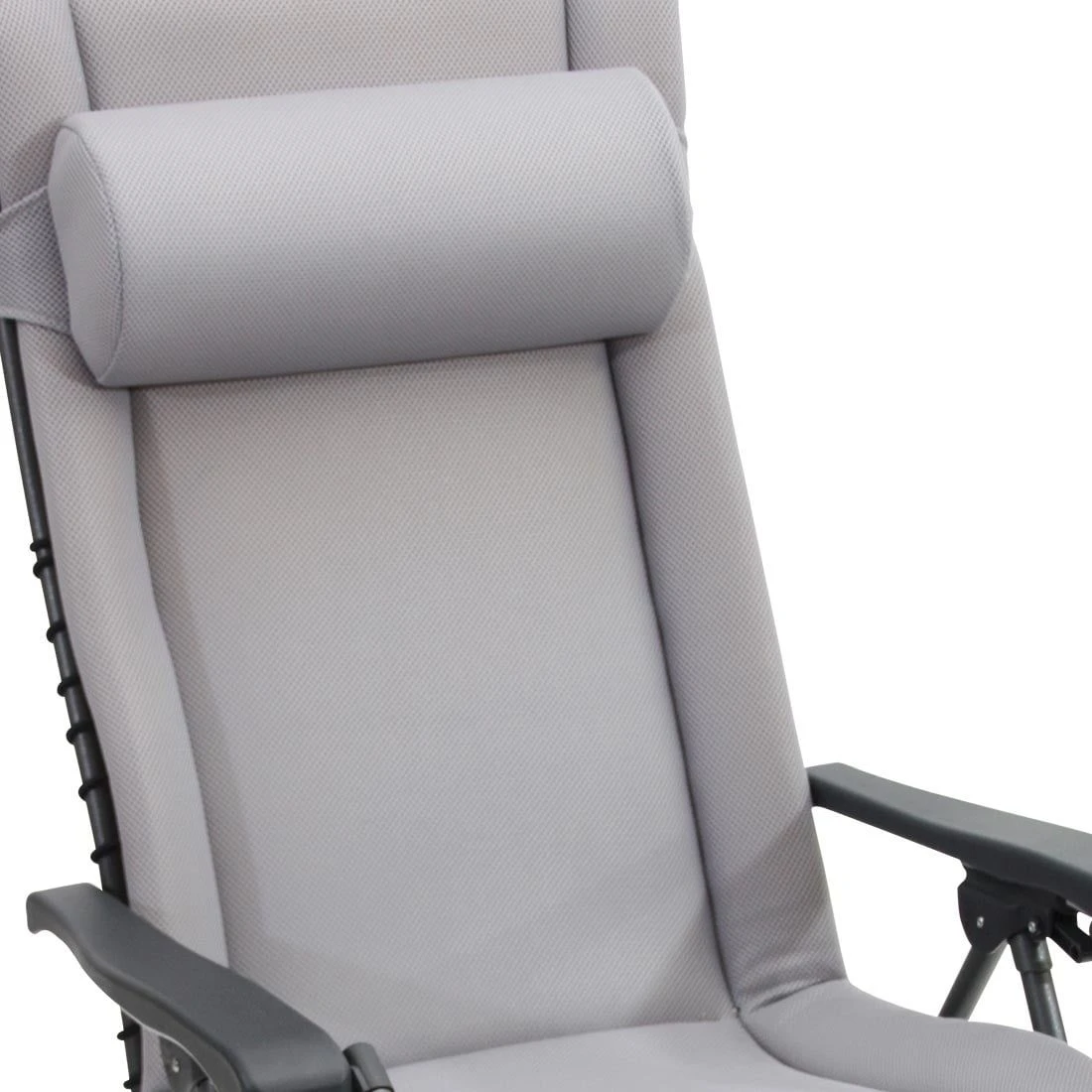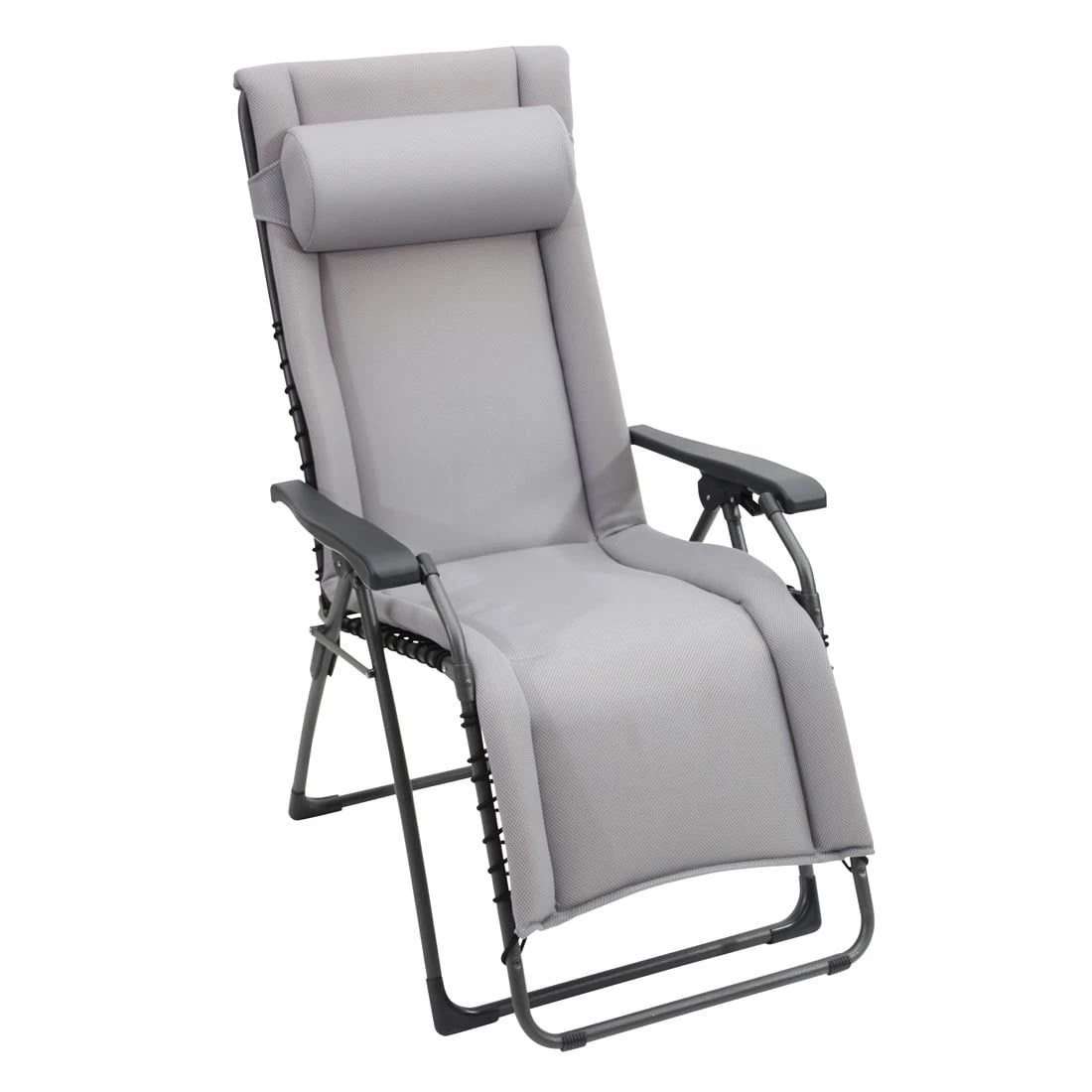 Das Gestell wird aus Stahl gefertigt und sorgt damit für stabilen Halt beim Sitzen. Farblich ist dieses in Anthrazit gehalten. Die Sitzfläche ist in ansprechendem Grau gehalten. Der Korpus und die Sitzfläche bestehen aus Textilene.