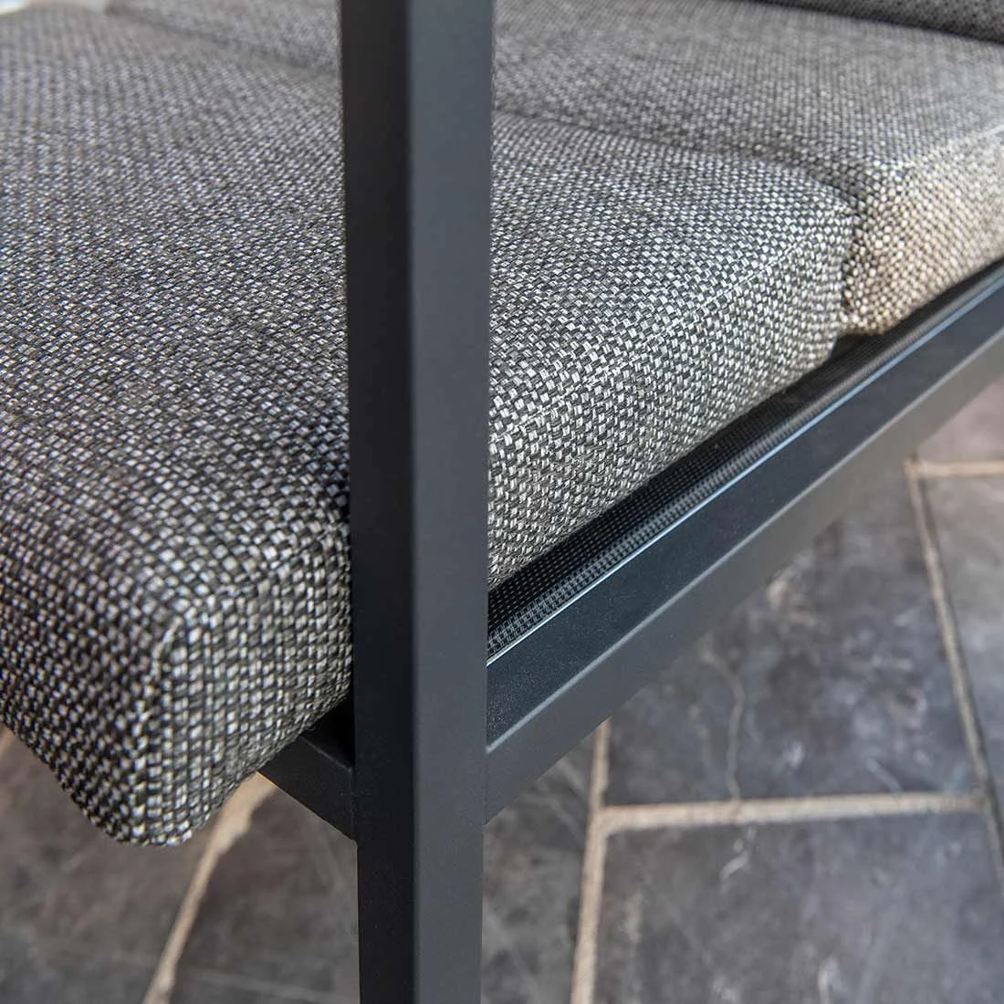 Das Gestell des Loungesets besteht aus pflegeleichtem, rostfreiem Edelstahl. Die Bezüge sind aus dem Marken-Outdoorstoff Olefin gefertigt. Das Material verbindet eine angenehme Stoffoberfläche mit hoher Witterungsbeständigkeit. Denn sowohl Sonne als auch Regen können dem robusten Outdoor-Stoff kaum etwas anhaben. Für die Tischplatte wird hochwertiges Keramik verwendet, das im Garteneine angenehme Wohlfühl-Atmosphäre schafft.