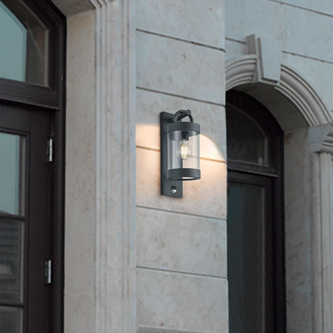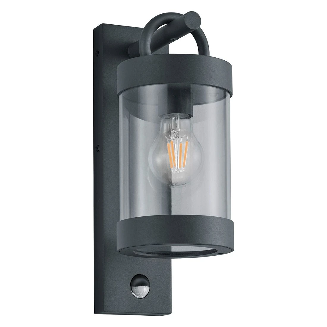 Die Trio Wandleuchte ist aus wetterbeständigem Aluminium-Druckguss gefertigt und in der Farbe Anthrazit gehalten. Dadurch lässt sie sich mit vielen weiteren Farben hervorragend kombinieren. Unterhalb des Leuchtkörpers befindet sich der praktische Bewegungsmelder (120° Erfassungswinkel auf max. 9 m). Durch diesen schaltet sich das Licht automatisch ein und aus. Ihr Vorteil: In die E27-Fassung können Sie ein zu Ihrem Geschmack passendes Leuchtmittel einsetzen (max. 28 W, nicht im Lieferumfang enthalten) und so die Helligkeit und Farbtemperatur selbst bestimmen.