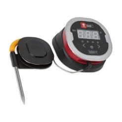 Mit diesem Bluetooth Thermometer wird das Grillen zum Kinderspiel. Dank der Schnellinstallation kommst du schon nach wenigen Minuten in den Genuss toller Merkmale und Funktionen: Anschlussmöglichkeit für 4 Temperaturfühler, Temperaturbenachrichtigungen, Diagramme und vieles mehr. Lade die kostenlose Weber iGrill-App auf dein Mobilgerät herunter und schon kann es losgehen. Das iGrill 2 Thermometer zeigt mittels eines 4-Farben-Spektrums und einer beleuchteten LED-Temperaturanzeige das Fortschreiten des Grillvorganges an. Dadurch kann der Deckel vom Grill oder Smoker geschlossen bleiben, um ein perfektes und wunschgemäßes Grillergebnis zu erreichen. Du hast die freie Wahl – voreingestellte Werte nutzen oder eigene Werte festlegen. Enthält 2 Fühler und ist für den Anschluss von weiteren 2 Temperaturfühlern geeignet. Darüber hinaus gibt es einen Temperaturnäherungswecker mit Temperaturbenachrichtigungen. Durch einen Magnet lässt sich das Gerät ganz einfach am Grill anbringen. Dieses iGrill Modell ist kompatibel mit folgenden Geräten: iPad (mini und ab der 3. Generation), iPhone (4s und aktueller), iPod touch (ab der 5. Generation), diverse Android-Geräte (mit Bluetooth ab 4.0), iOS 7 und aktueller. Eine Batterie ist enthalten. Die Batterielaufzeit beträgt bis zu 200 Stunden.