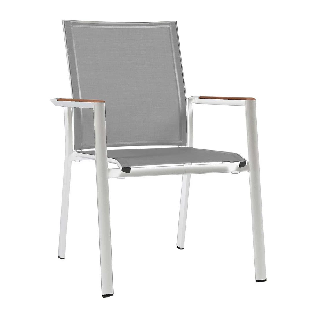 Für die Bespannung der Sitzfläche verlässt sich der Hersteller auf hochwertiges Textilene. Es zeichnet sich durch eine hohe Robustheit gegenüber Hitze und Frost aus und ist leicht zu reinigen. Unser Tipp: Aufeinander gestapelt können auch mehrere Exemplare des Stapelsessels platzsparend aufbewahrt werden. Dank der Verwendung von hochwertigen Materialien ist der Stapelsessel überaus robust und hält einer Belastung von 100 kg hervorragend stand. Die Sitzfläche hat mit 45 cm eine komfortable Höhe.