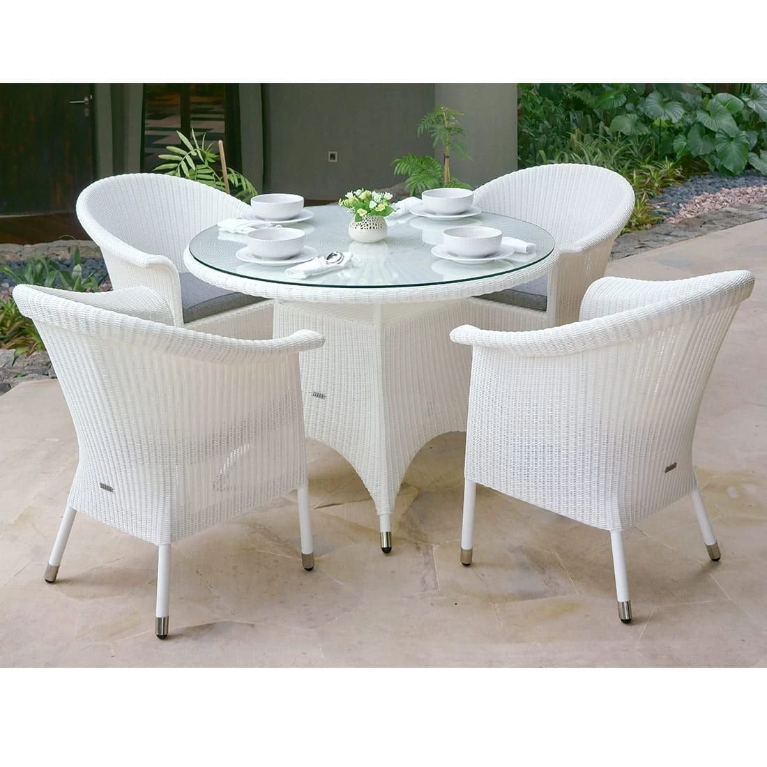 Der Korpus und die Sitzfläche sind aus Polyrattan-Geflecht gefertigt. Für die Herstellung des Gestells wird hochwertiges und wetterfestes Aluminium verwendet. Für ein perfekt stimmiges Gesamtbild sorgt die einheitliche Farbgebung in stilvollem Schneeweiß.