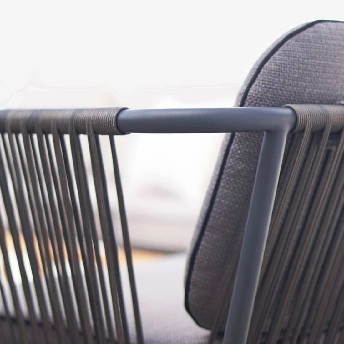 Die hohe Dichte und gute Wetterfestigkeit machen das Gestell, das aus Teakholz gefertigt wird, besonders robust und wetterfest. Optisch begeistert das Gestell in der Farbe Teak Gebürstet. Das Gestell ist mit Rope umflochten und bringt somit ein gemütliches Flair auf Ihre Terrasse. Der Korpus ist farblich in geschmackvollem Brown Brushed gestaltet. Die Sitzfläche ist aus robustem Outdoorstoff gefertigt. Bei langen Feuchtigkeitsperioden empfehlen wir für eine längere Haltbarkeit dennoch eine Lagerung der abnehmbaren Kissen im Inneren.